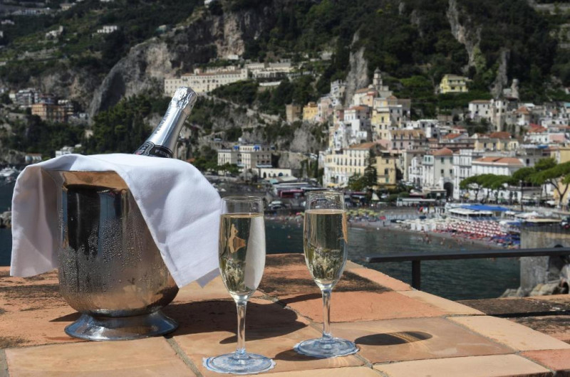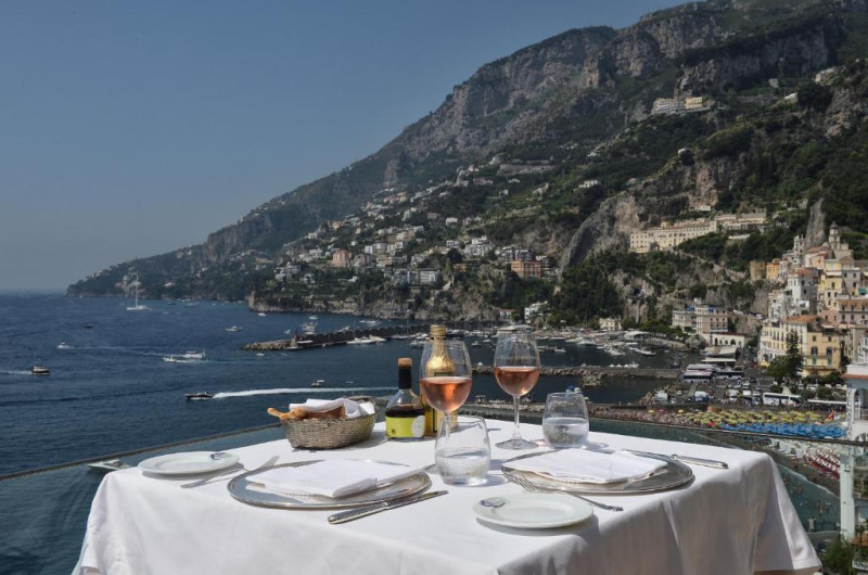 La pranz si cină, oaspeții pot savura delicatese locale la cele 2 restaurante, dintre care unul are vedere la tărm, iar celălalt la turnul vechi. Centrul localitătii Amalfi se află la doar 200 de metri, iar langă hotel există o statie de autobuz public.