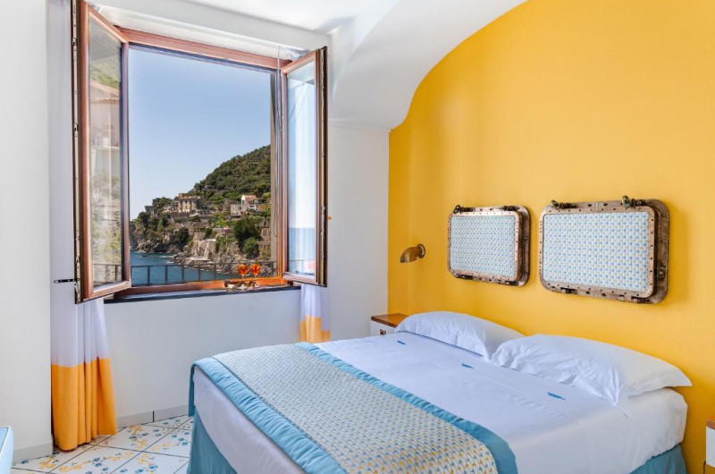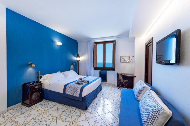 Camerele Hotelului Ravello Art Marmorata sunt decorate in stil marin. Unele camere oferă vedere la mare, iar altele au cadă spa.