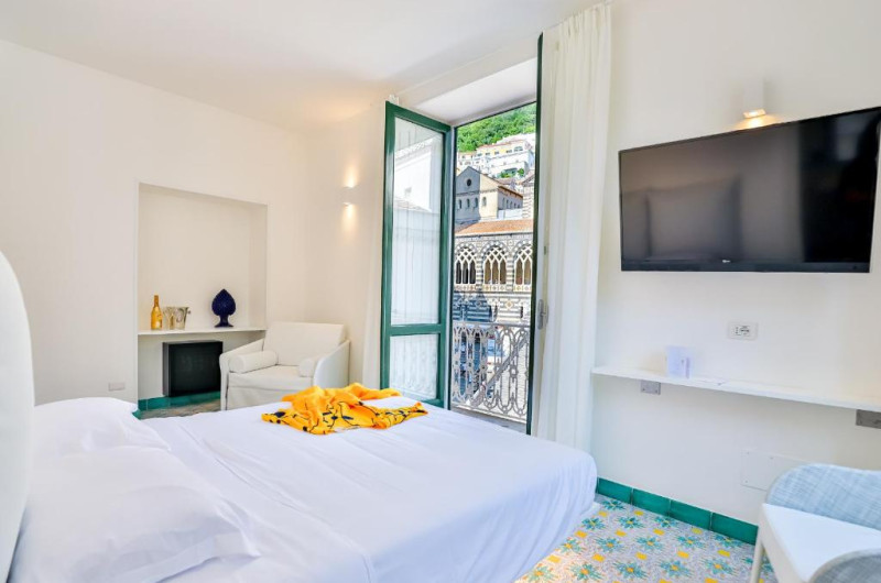 Completely renovated in 2021, the hotel offers bright, comfortable rooms with modern amenities, yet maintains the ambience of a period structure. Some rooms feature panoramic views of Amalfi's Duomo.