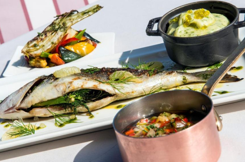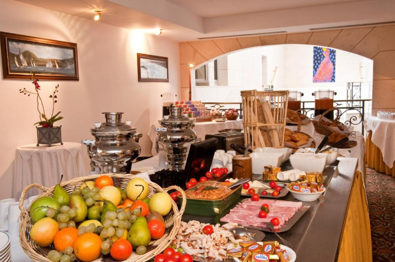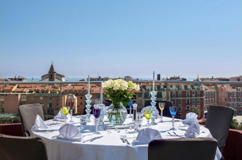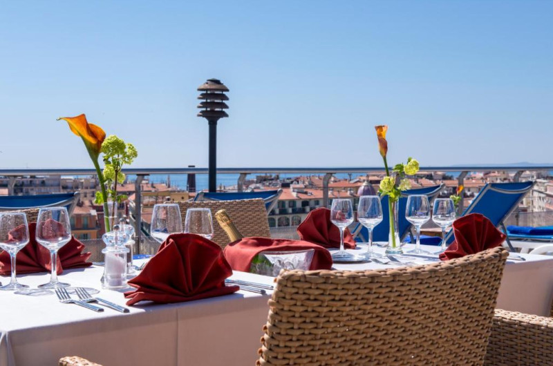 Puteti savura un mic dejun tip bufet si preparate din bucătăria regională la restaurantul L'Horloge de la parter sau pe terasă in lunile de vară. Pentru băuturi, este disponibil barul Le Seven Blue cu vedere la coasta mediteraneană.