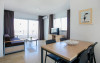 Facilitati apartament cu 2 dormitoare: pat matrimonial sau twin, baie proprie, cadă sau dus, prosoape, aer conditionat, garderobă sau dulap, TV cu ecran plat, aparat pentru prepararea de ceai/cafea, mașină de cafea, seif (contra cost), chicineta, frigider, balcon.