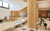Restaurantul tip bufet oferă preparate internaționale si pranzuri la pachet. De asemenea, există un bar, precum și distribuitoare automate pentru băuturi și gustări.
