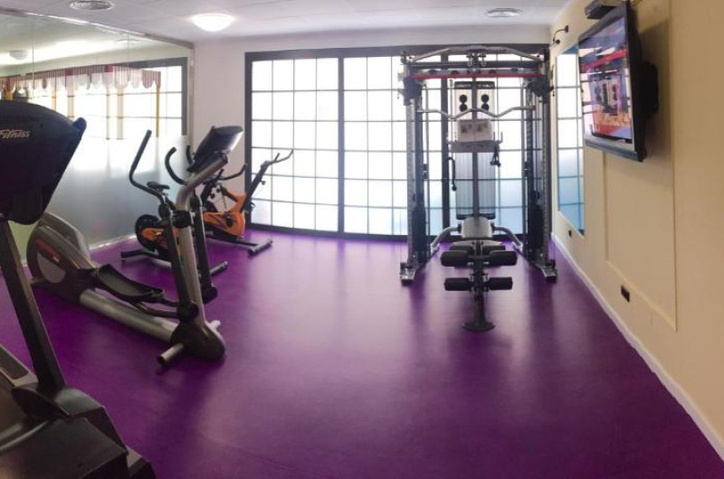 O sală de fitness cu echipamente necesare pentru o gamă variată de exerciții fizice este la dispoziția celor interesați.