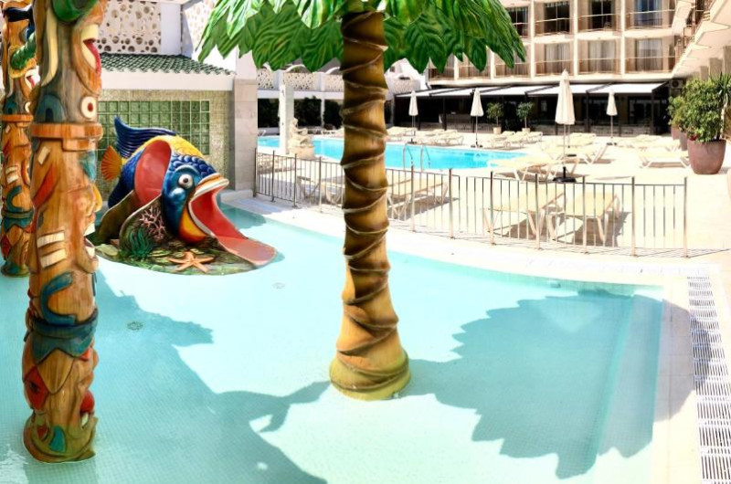 Copiii se pot distra la piscina special amenajată pentru ei.