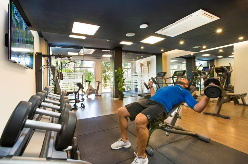 O sală de fitness cu echipamente necesare pentru o gamă variată de exerciții fizice este la dispoziția celor interesați.