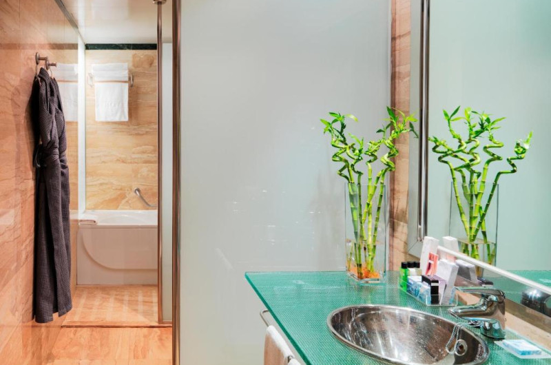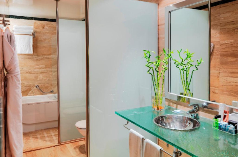 Camerele luminoase de la H10 Marina Barcelona au aer conditionat, podea cu parchet si TV prin satelit. De asemenea, au baie privată cu uscător de păr.