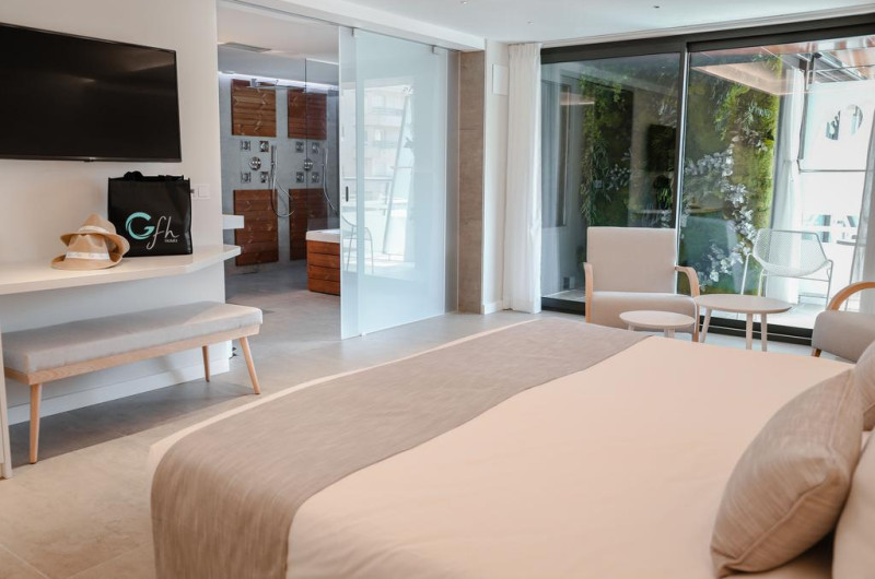 Camerele confortabile de la Kaktus Playa sunt dotate cu pardoseală de gresie/ marmură, aer condiționat, Tv și seif. Fiecare cameră dispune de minibar și mașină pentru preparare cafea sau ceai. În camere există baie cu cadă sau duș ce are în dotare foehn și articole de toaletă gratuite. Camerele au balcon cu vedere la mare sau la piscină. Curățenia in cameră se face zilnic. Anumite camere au cadă cu hidromasaj care asigură un plus de confort și răsfăț. Proprietatea oferă camere pentru nefumători.