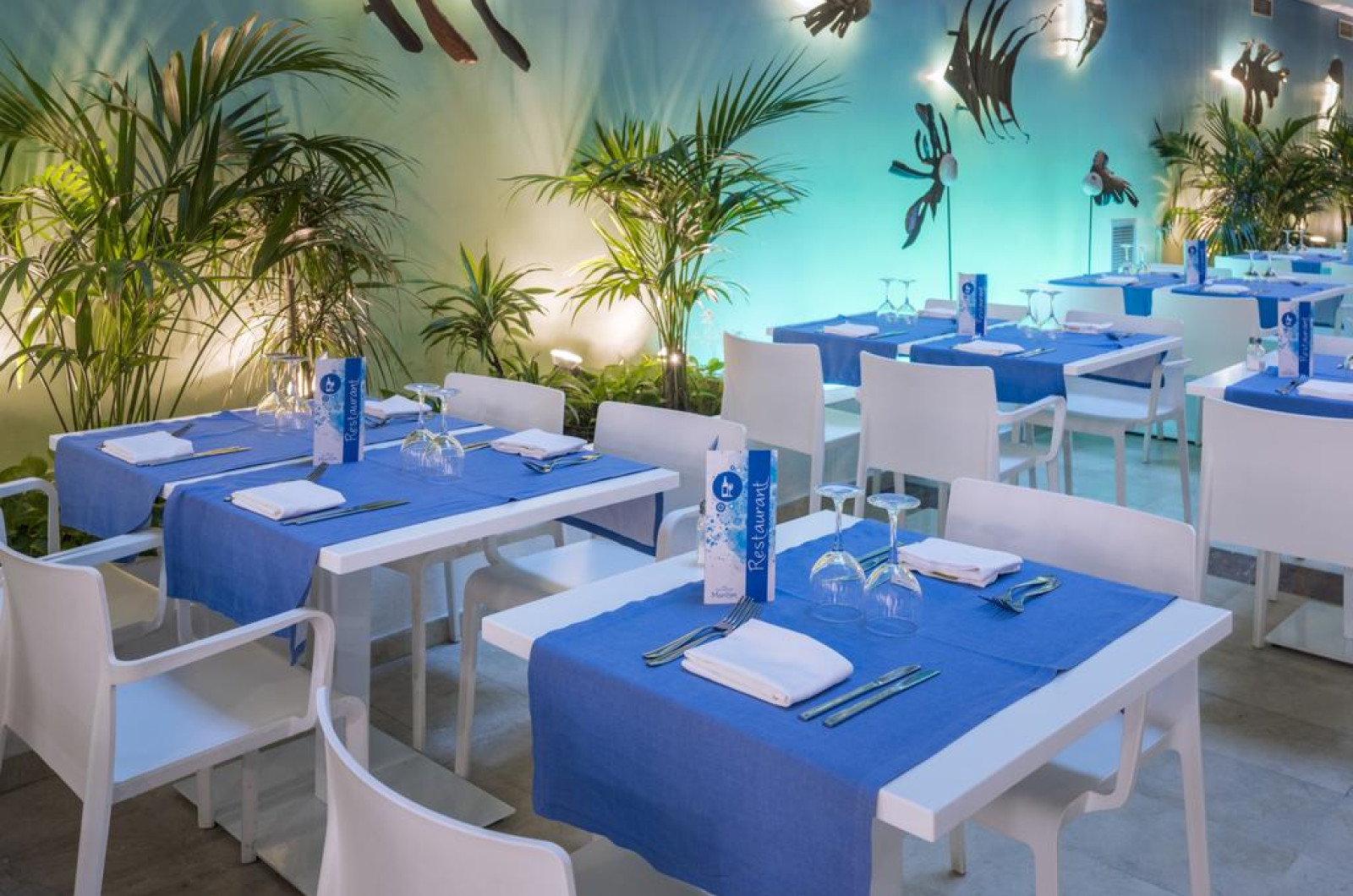 La Montemar Maritim oaspeții au la dispoziție un restaurant care servește mâncare în stil bufet. Preparate din bucătăria internațională așteaptă să fie degustate în fiecare zi la micul dejun, prânz și cină. Masa poate fi servită atât în interior, cît si în aer liber, pe terasă, în funcție de vreme. Oaspeţii pot avea diverse băuturi răcoritoare sau alcoolice la bar. În cadrul proprietății există și un snack bar care servește băuturi și gustări. Pentru cei cu anumite nevoi de nutriție, Montemar Maritim oferă meniuri pentru diete speciale.