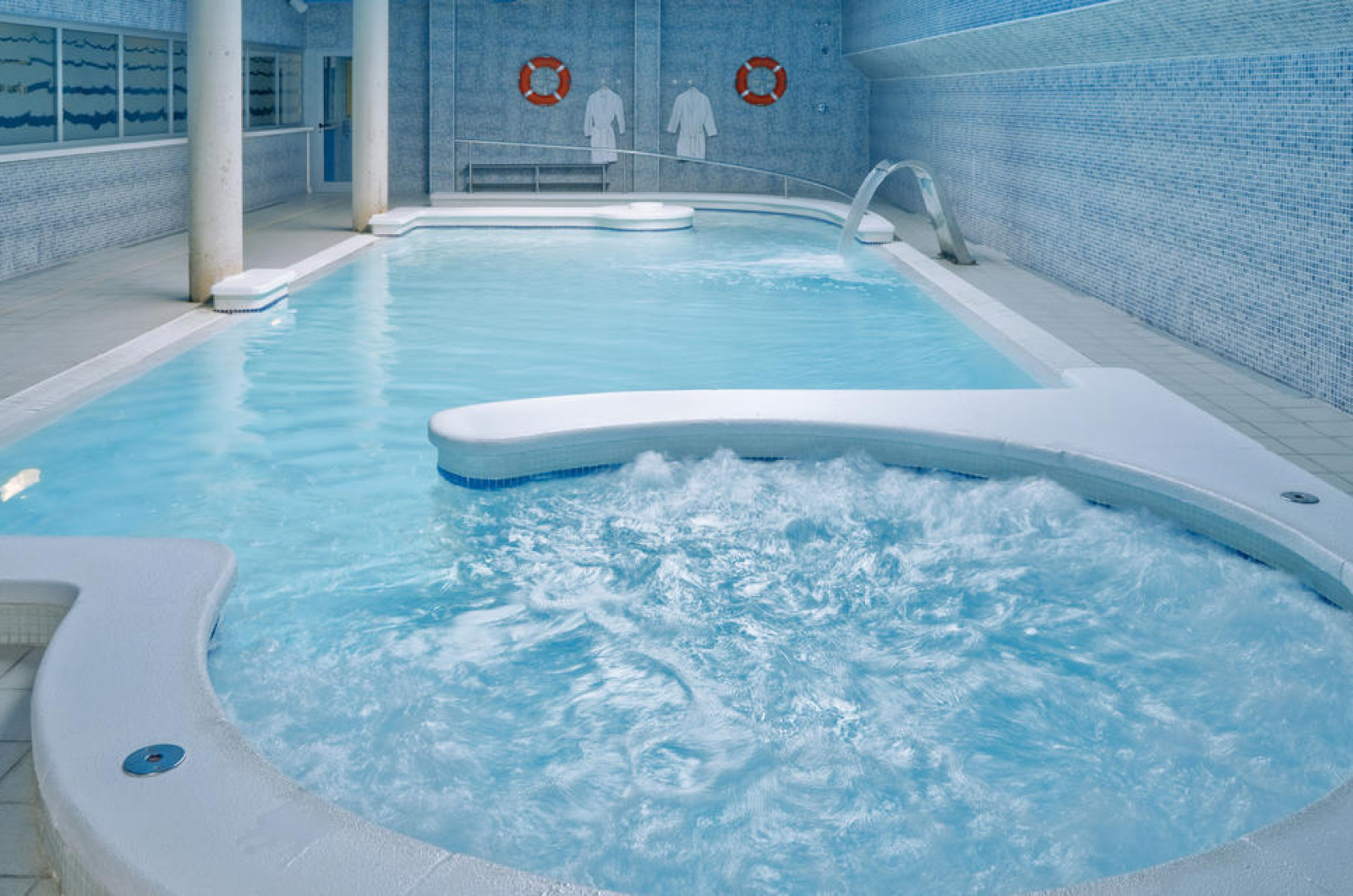 Din facilitățile oferite de proprietate nu lipsesc cele spa, unde oaspeții se pot relaxa la masaj sau la saună. Montemar Maritim are în dotare jacuzzi În cadrul proprietatății există piscină interioară pentru lunile mai reci sau pentru zile toride, precum și piscină exterioară unde oaspeții se pot relaxa și bronza în voie. Piscina exterioară este prevăzută cu șezlonguri confortabile, prosoape și umbrele de soare, precum și cu un bar unde oaspeții pot degusta băuturi alcoolice sau răcoritoare.