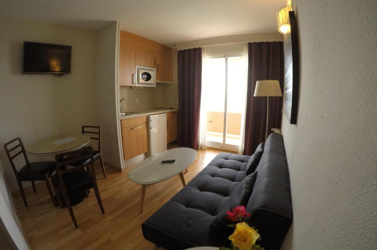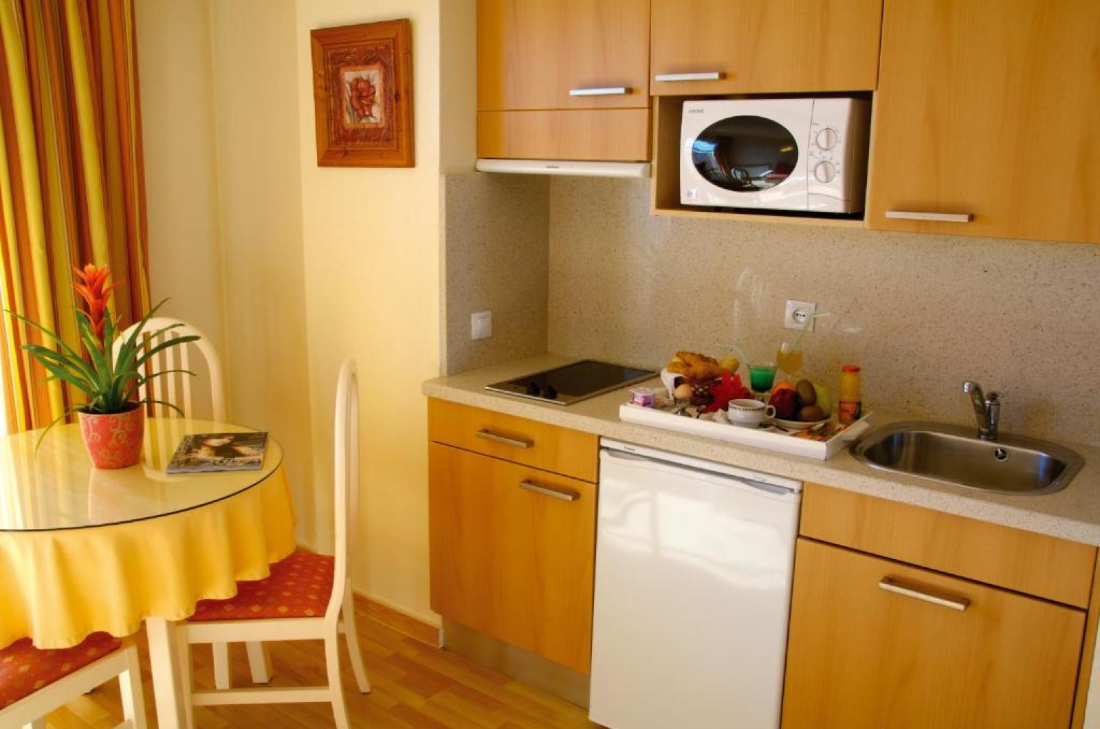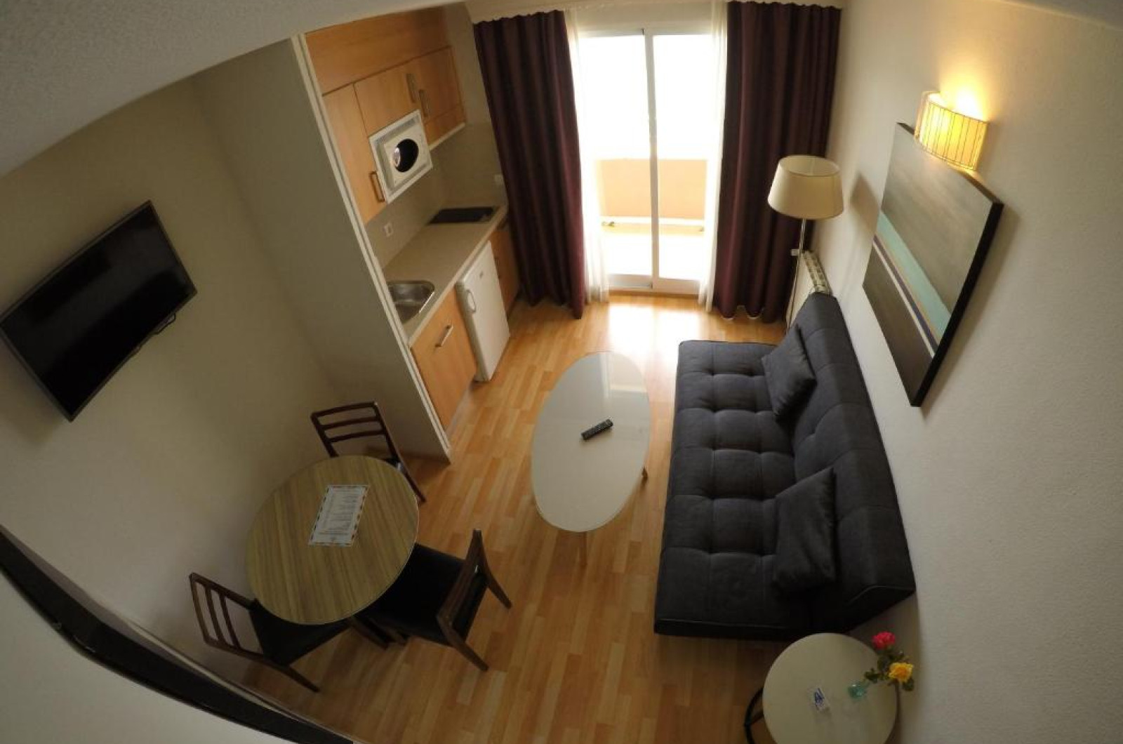 Facilitati studio: pat matrimonial sau twin, baie proprie, seif (contra cost), aer conditionat, telefon, uscator de par, TV prin satelit, chicineta, terasa.