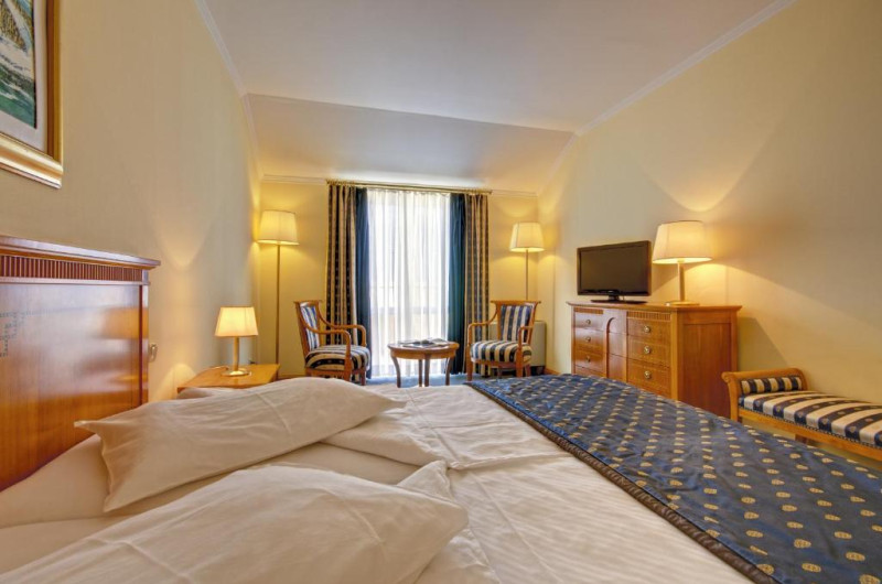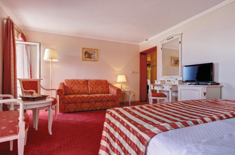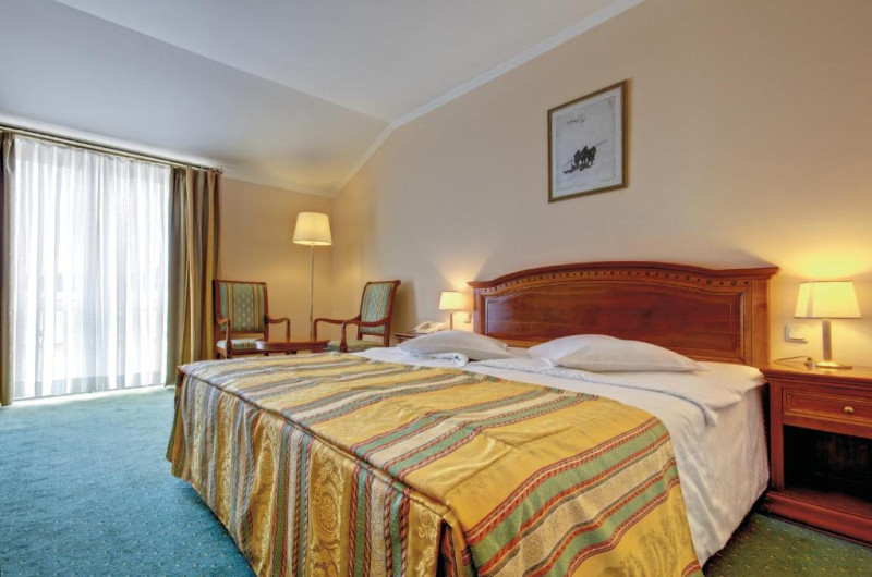 Facilitati camera dubla: pat dublu, baie proprie, aer conditionat, uscator de par, mini bar ( contra cost ), seif ( contra cost ), telefon, TV, balcon, WI-FI.