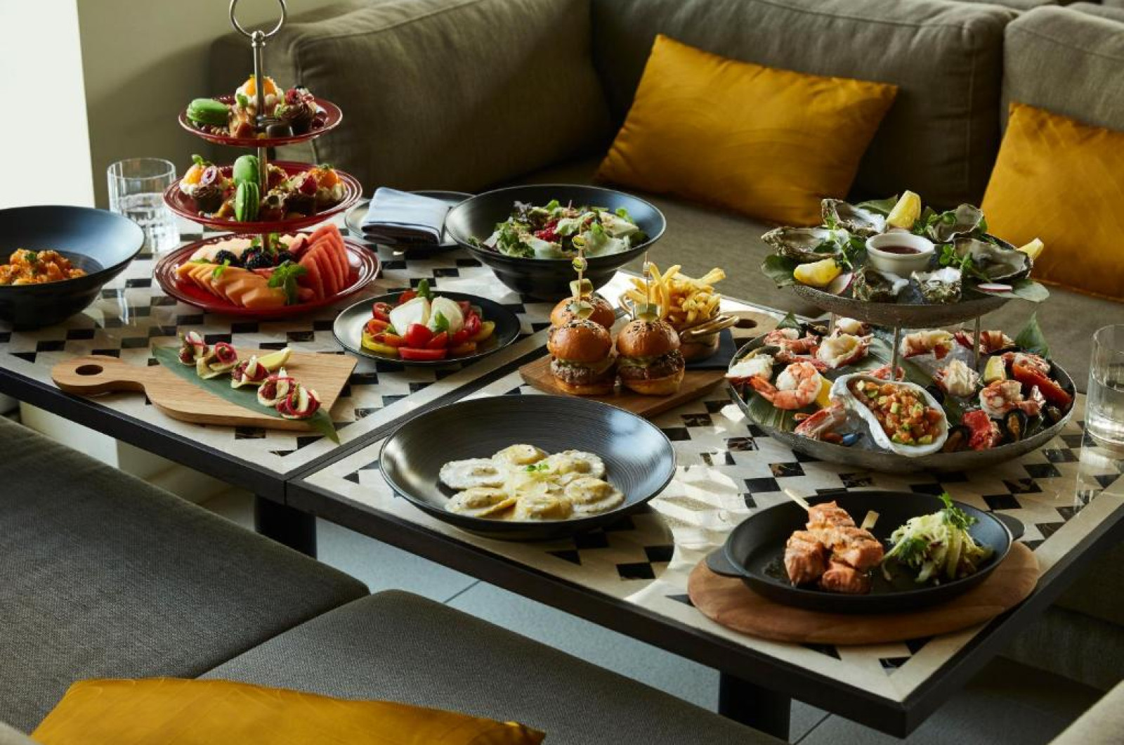 La Four Seasons Hotel Dubai International Financial Centre oaspeții au la dispoziție 3 restaurante unde pot savura mâncăruri delicioase à la carte. Preparate din bucătăria internațională așteaptă să fie degustate în fiecare zi. Masa poate fi servită atât în interior, cît si în aer liber, pe terasă, în funcție de vreme. Sunt disponibile 2 baruri unde oaspeții pot avea diverse băuturi răcoritoare sau alcoolice.