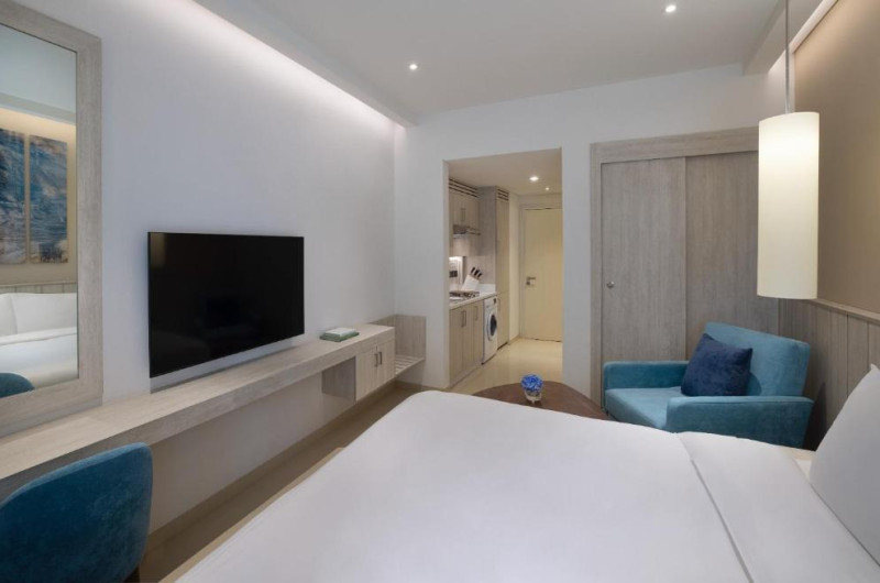 Hotelul va pune la dispoziție oaspeților camere cu aer condiționat, birou, ceainic, minibar, cutie de valori, TV cu ecran plat, balcon și baie privată cu duș. Anumite camere de aici au o chicinetă cu frigider, cuptor cu microunde și plită.