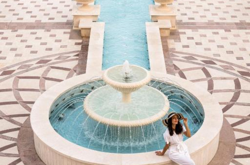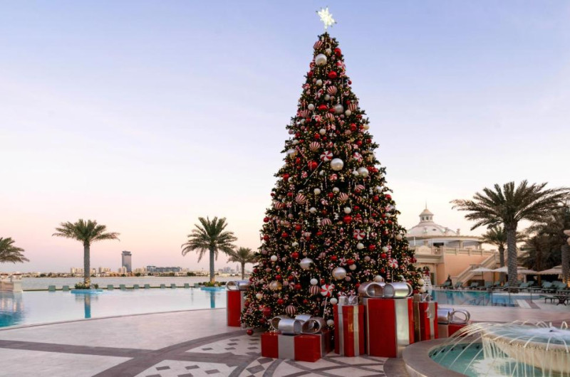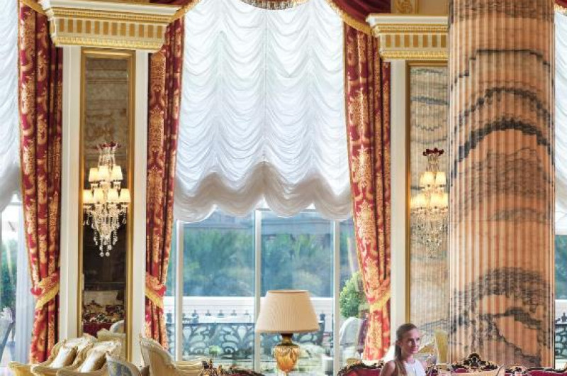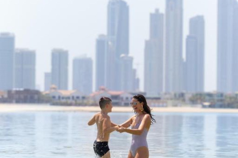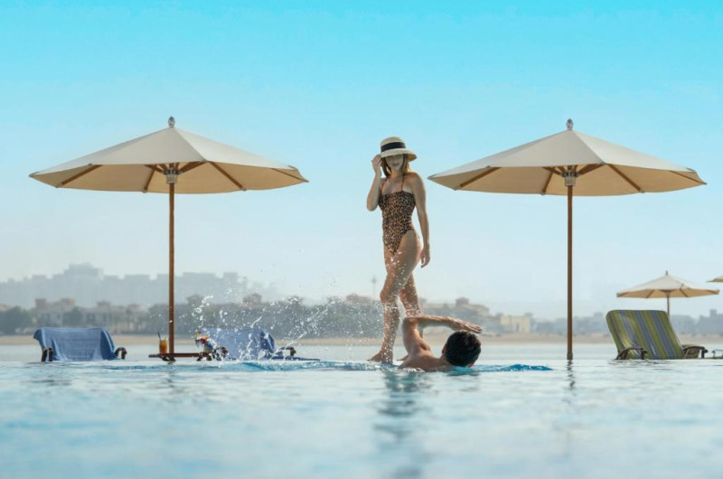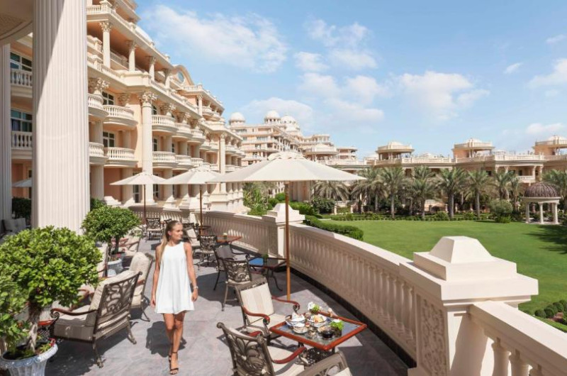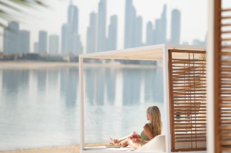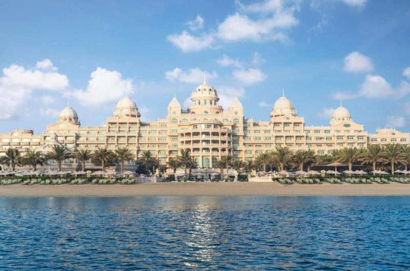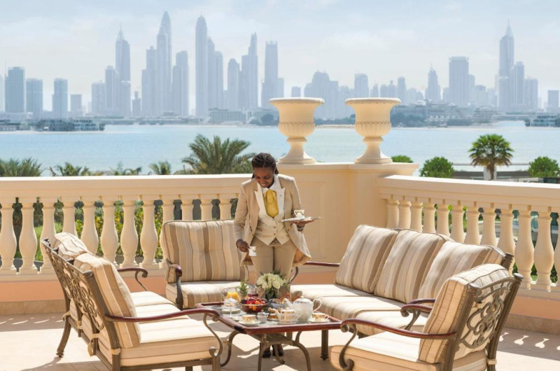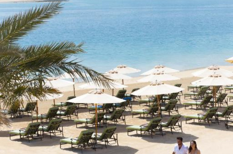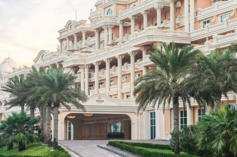 Situat pe coasta vestică a insulei artificiale Palm Jumeirah, Raffles The Palm are o plajă privată cu nisip alb de 500 de metri, o piscină in aer liber cu vedere la oraș si 6 restaurante.