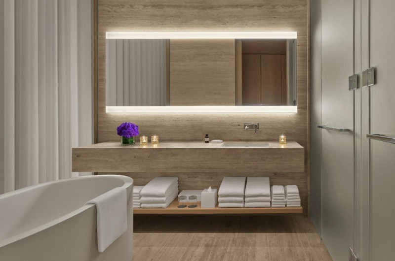 Camerele hotelului au aer condiționat, birou, aparat de cafea, frigider, minibar, seif, televizor, baie privată cu bideu și terasă. Fiecare cameră de la hotelul The Dubai EDITION include lenjerie de pat și prosoape.