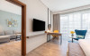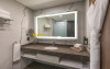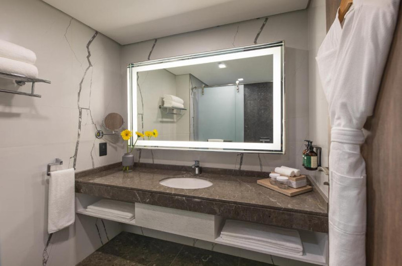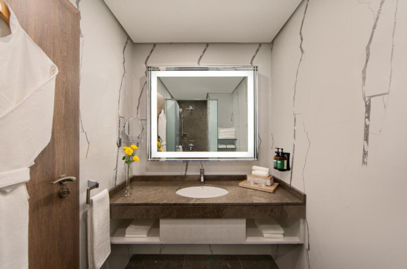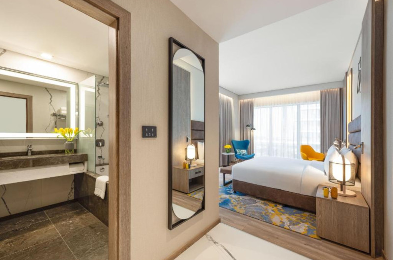 Camerele și suitele spațioase sunt decorate in tonuri calde și dispun de balcoane private cu vedere spre mare sau spre oraș. Facilitățile includ 3 piscine infinity, inclusiv una pe acoperiș, spa de lux, centru fitness ultramodern și multiple opțiuni gastronomice, de la restaurantul mediteranean pană la lounge-ul panoramic.