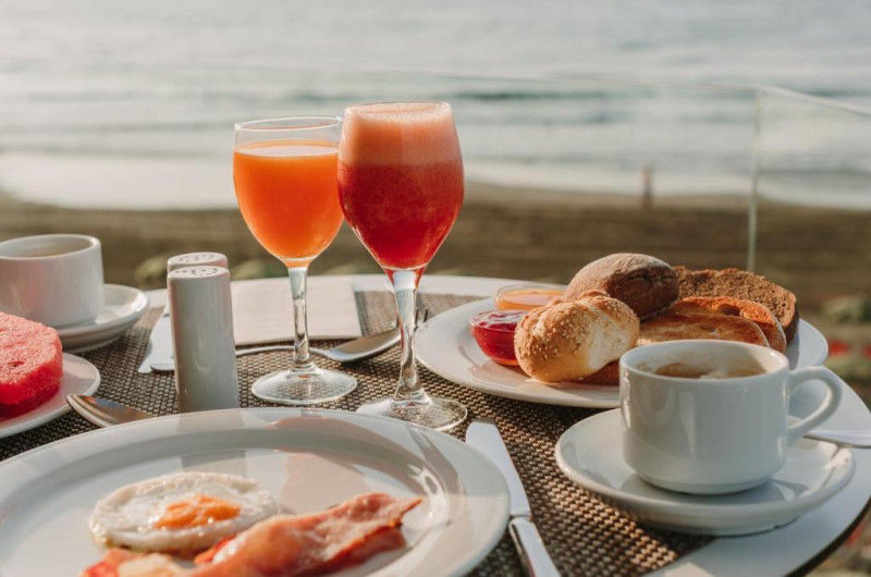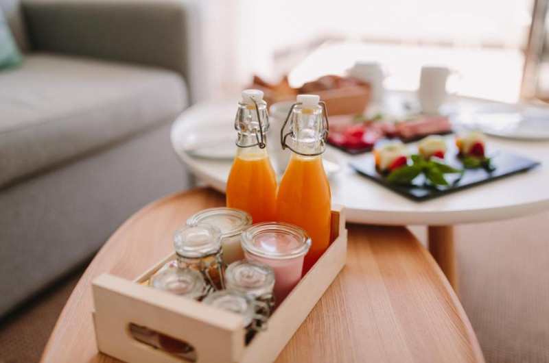 Există diverse locuri unde se poate lua masa: un restaurant, o sală de mese și un bar. Locul de cazare oferă pentru masă demipensiune și regim all inclusive. Clienții de la all inclusive se bucură de oferte speciale, ca de exemplu gustări, de asemenea există o selecție de băuturi alcoolice și nealcoolice. Un bufet bogat la micul dejun, prânz și cină sunt delicioase și pregătite foarte diversificat. La cerere pot fi pregătite mese fără gluten și feluri de mâncare vegetariene. O atracție deosebită este gătitul în fața musafirilor.