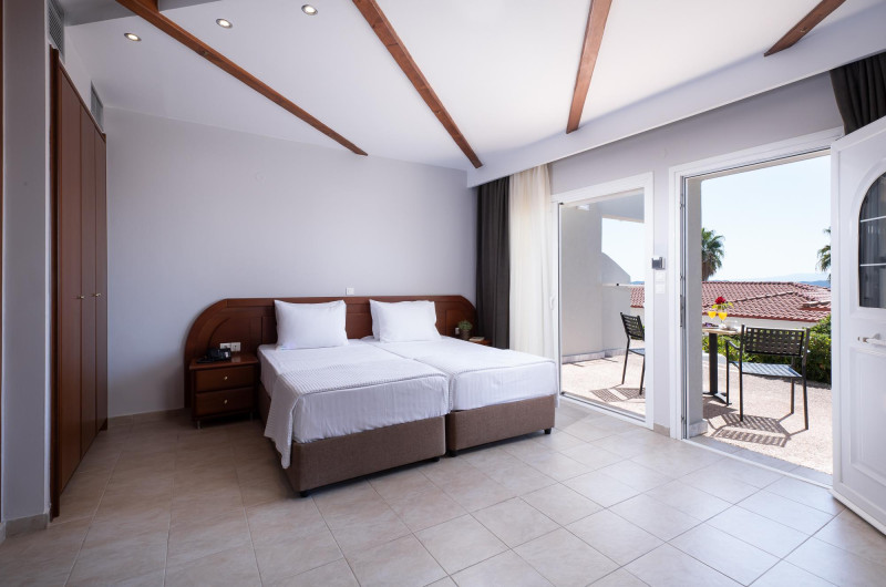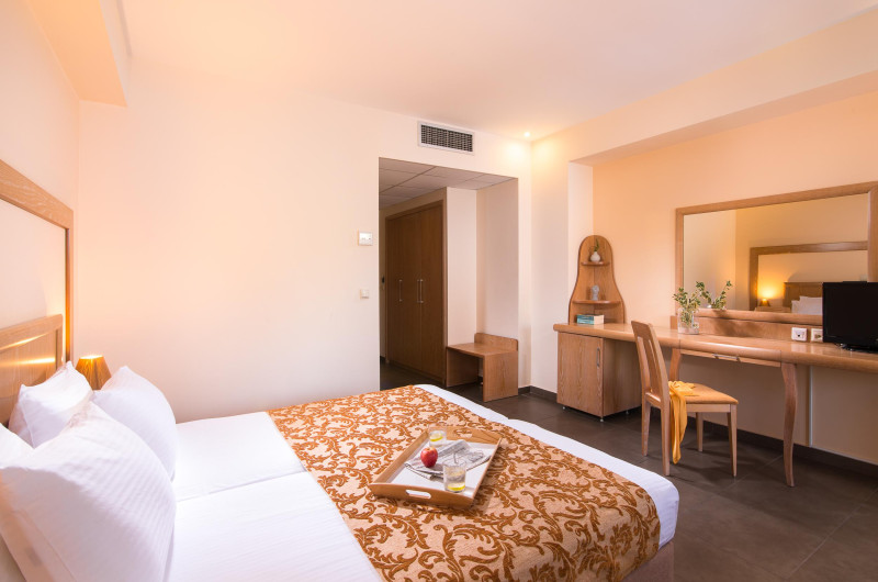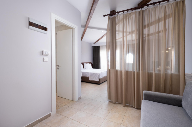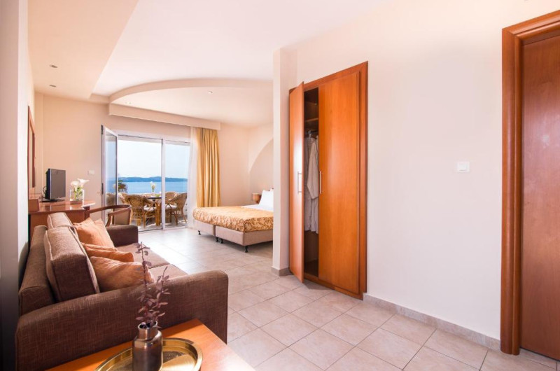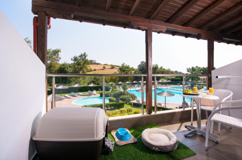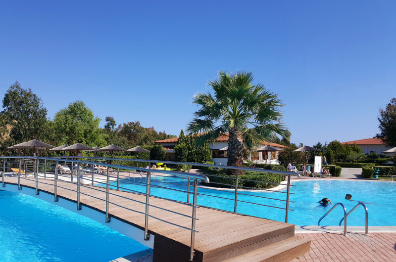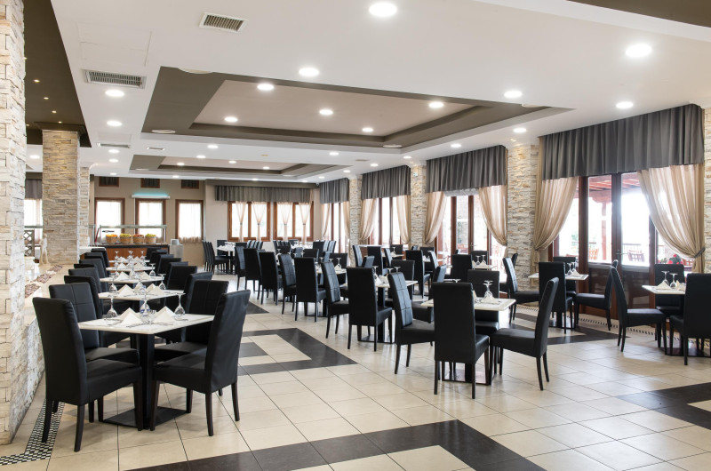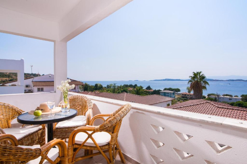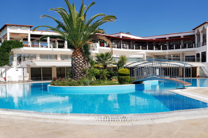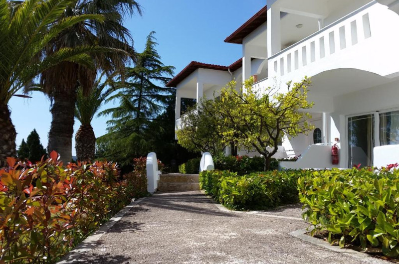 Hotelul spa pentru turiști de la plajă, turiști activi și turiști care fac sport, vacanțieri de la club, familii, celibatari și cei îndrăgostiți de natură, se află la câteva secunde de plaja cu nisip a hotelului, chiar în afara Uranopolisului, până în centrul localității sunt cam 7 km. Stațiile mijloacelor locale de transport în comun se află chiar în fața ușii.