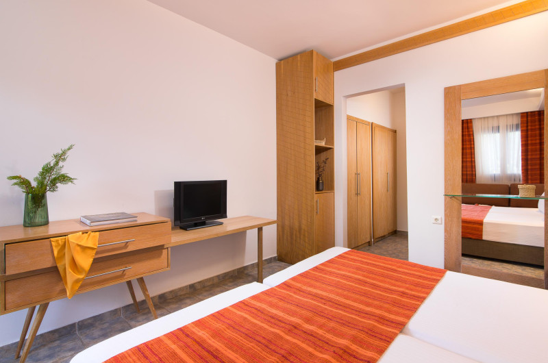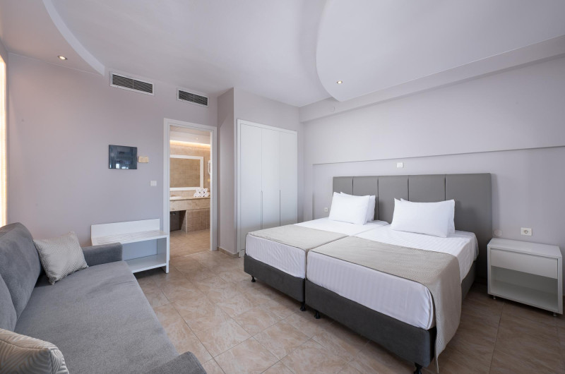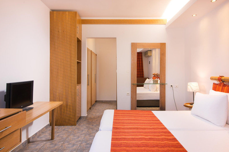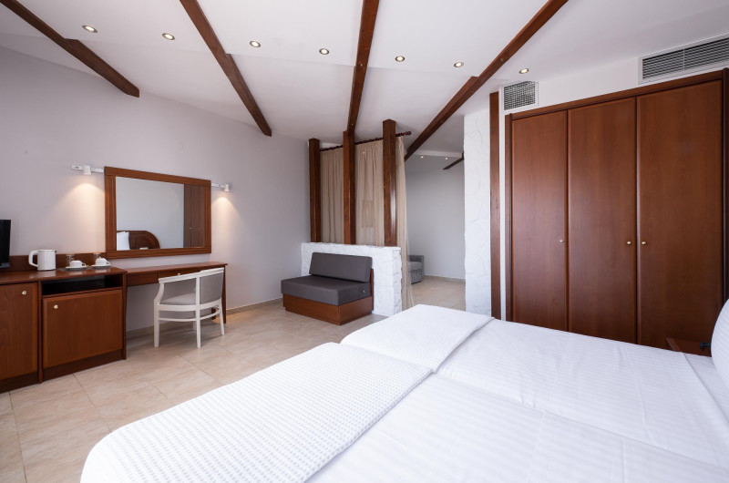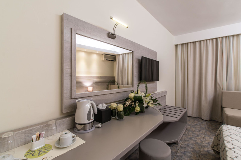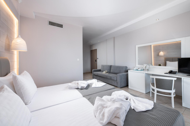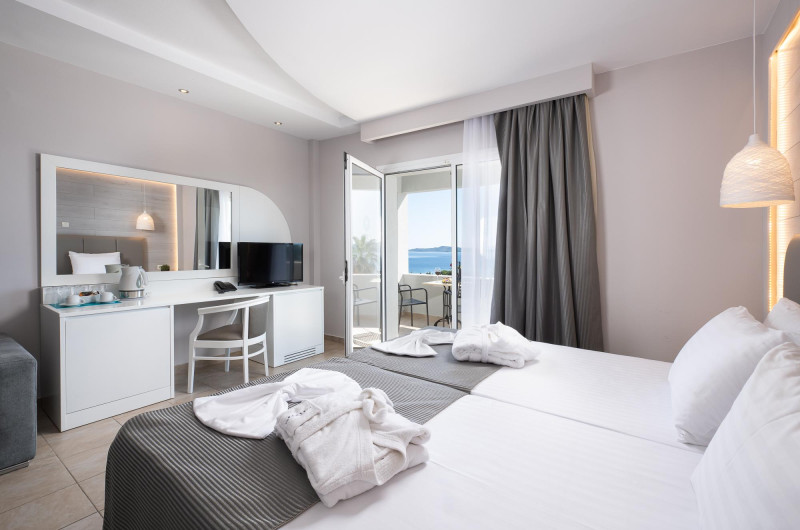 Un aparat de aer condiționat (gratuit) și o pardoseală încălzită ce poate fi ajustată individual creează o atmosferă plăcută în camere. Balconul sau terasa sunt incluse în dotările standard ale majorității camerelor. Camerele au un pat dublu. La cerere pot fi puse la dispoziție paturi gratuite pentru copii. Contra cost, clienții pot să-și depoziteze lucrurile de valoare într-un seif. Mai sunt disponibile și un minifrigider și un aparat pentru cafea/ceai. Un telefon cu apelare directă, canale prin satelit și WiFi-ul (gratuit) oferă un concediu confortabil. În băi sunt disponibile un uscător de păr și halate de baie pentru folosința zilnică. Articolele de cosmetică creează un confort deosebit în băi. De asemenea stau la dispoziție camere cu băi fără obstacole.