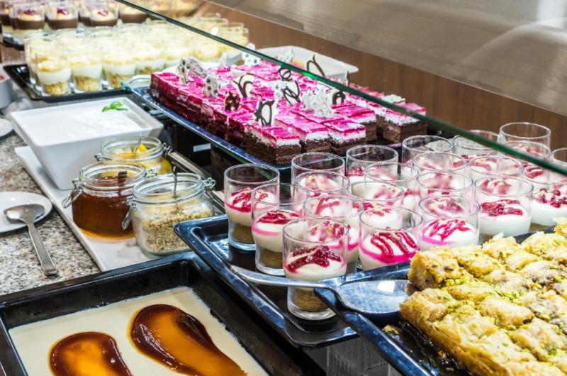Zona cu restaurante dispune de un lobby bar. Clienții sunt așteptați în unul din cele 2 restaurante (nefumători, bufet, aer condiționat și scaun înalt pentru copii). Băuturile răcoritoare de la barul de pe plajă creează momente minunate. Clubul oferă pentru masă demipensiune și pensiune completă. Un bufet delicios și bogat își așteaptă clienții la micul dejun, prânz și cină. Bucătari foarte talentați pregătesc bucate delicioase în timpul unor reprezentații de gătit. Mărci internaționale sunt disponibile contra cost, de asemenea există băuturi nealcoolice și băuturi alcoolice.