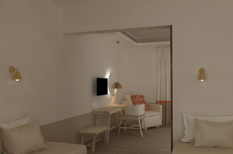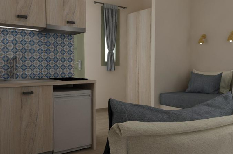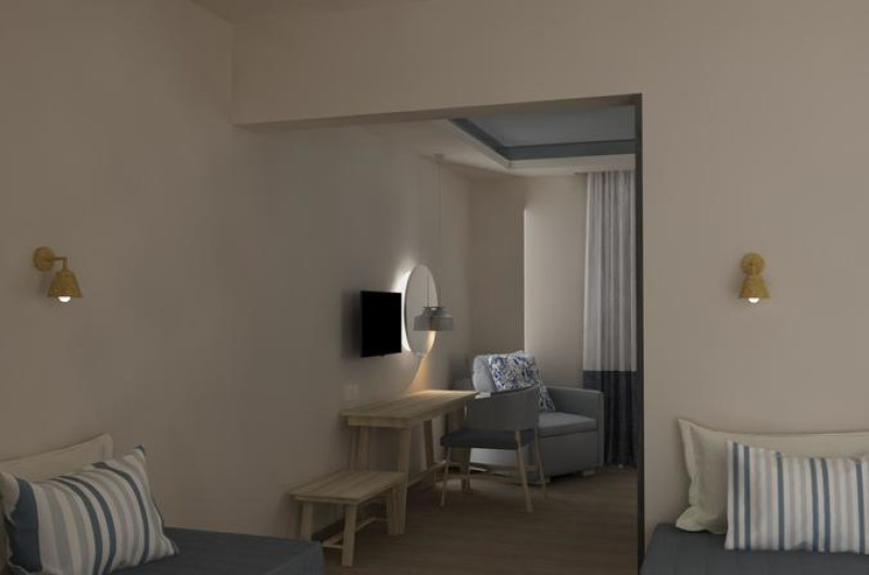 Sunt disponibile 20 camere. Camerele confortabile de la Asteris Village au pardoseală de gresie/ marmură, aer condiționat, Tv cu canale prin satelit și seif. Unele camere au balcon cu vedere la mare sau la piscină. În camere există baie cu cadă sau duș. Oaspeții au acces gratuit la serviciul Wi-fi în camere. Curățenia in cameră se face zilnic. Toate camerele spațioase de la Asteris Village au zonă de relaxare cu canapea, ceea ce oferă un plus de confort. Fiecare unitate de cazare include o chicinetă utilată cu frigider, plită de gătit și ustensile de bucătărie. De asemenea, sunt disponibile o zonă de luat masa și un cuptor pentru prepararea mâncărurilor. Proprietatea oferă camere pentru familie cu o suprafață mai mare și un număr mai mare de paturi față de cele standard. Se pot rezerva de asemenea camere pentru nefumători.