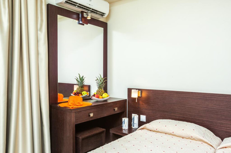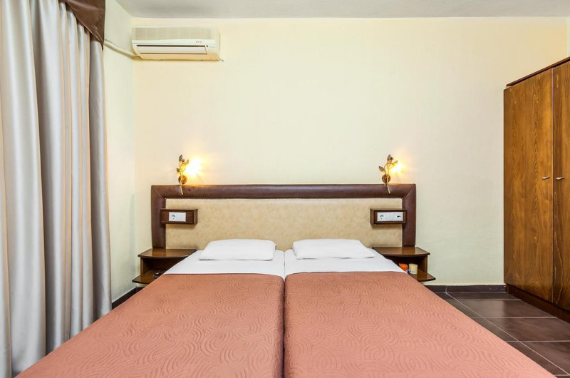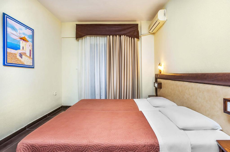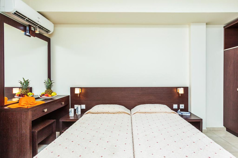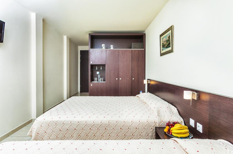 În camere există baie cu cadă sau duș ce are în dotare foehn și articole de toaletă gratuite. Camerele confortabile de la Elinotel Polis sunt dotate cu pardoseală de gresie/ marmură, aer condiționat, Tv și seif. Camerele au balcon cu masă și scaune unde pot fi petrecute momente de relaxare. Proprietatea oferă camere pentru familie cu o suprafață mai mare și un număr mai mare de paturi față de cele standard. Se pot rezerva de asemenea camere pentru nefumători.