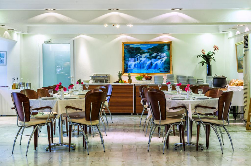 La Elinotel Polis oaspeții au la dispoziție un restaurant care servește mâncare în stil bufet. Masa poate fi servită atât în interior, cît si în aer liber, pe terasă, în funcție de vreme. Oaspeţii pot avea diverse băuturi răcoritoare sau alcoolice la bar.