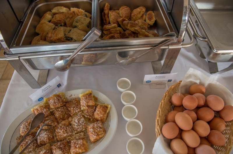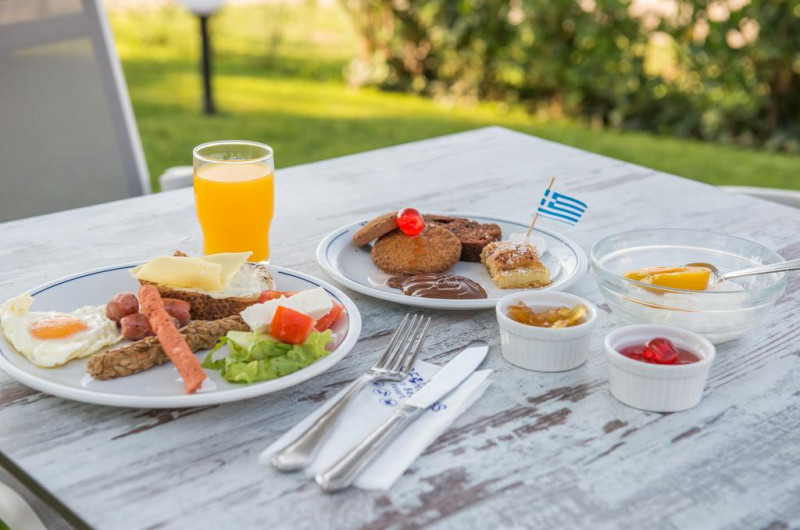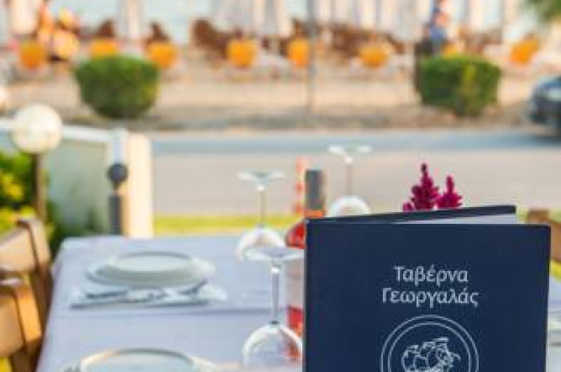 La Georgalas Sun Beach Hotel oaspeții au la dispoziție un restaurant care servește mâncare à la carte. Preparate din bucătăria grecească așteaptă să fie degustate în fiecare zi. Masa poate fi servită atât în interior, cît si în aer liber, pe terasă, în funcție de vreme. Oaspeţii pot avea diverse băuturi răcoritoare sau alcoolice la bar. În cadrul proprietății există și un snack bar care servește băuturi și gustări.