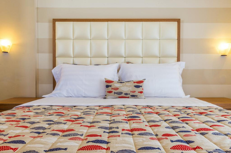 Fiecare cameră dispune de un aparat pentru preparare cafea sau ceai, cană-fierbător și minibar. Oaspeții pot solicita serviciul de room service pentru a servi masa sau diverse băuturi. Camerele confortabile de la Georgalas Sun Beach Hotel au pardoseală de gresie/ marmură, aer condiționat, Tv cu canale prin satelit și seif. În camere există baie cu cadă sau duș ce are în dotare foehn și articole de toaletă gratuite. Unele camere au balcon, cu vedere la grădină, unde oaspeții se pot relaxa în compania celor dragi. Oaspeții au acces gratuit la serviciul Wi-fi în camere. Curățenia in cameră se face zilnic. Fiecare unitate de cazare are frigider. Proprietatea oferă camere pentru familie cu o suprafață mai mare și un număr mai mare de paturi față de cele standard. Se pot rezerva de asemenea camere pentru nefumători.