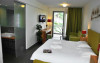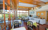 Hanioti Village Spa are un restaurant cu mese situate in interior si in aer liber. Puteti lua masa in bar, in sala de mese sau la barul de la piscină. Sunt organizate periodic grătare. In fiecare zi puteti beneficia de mic dejun continental.