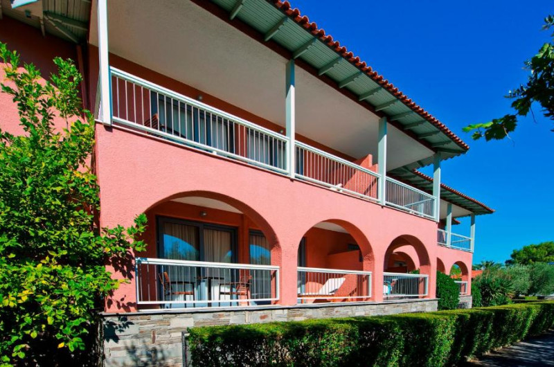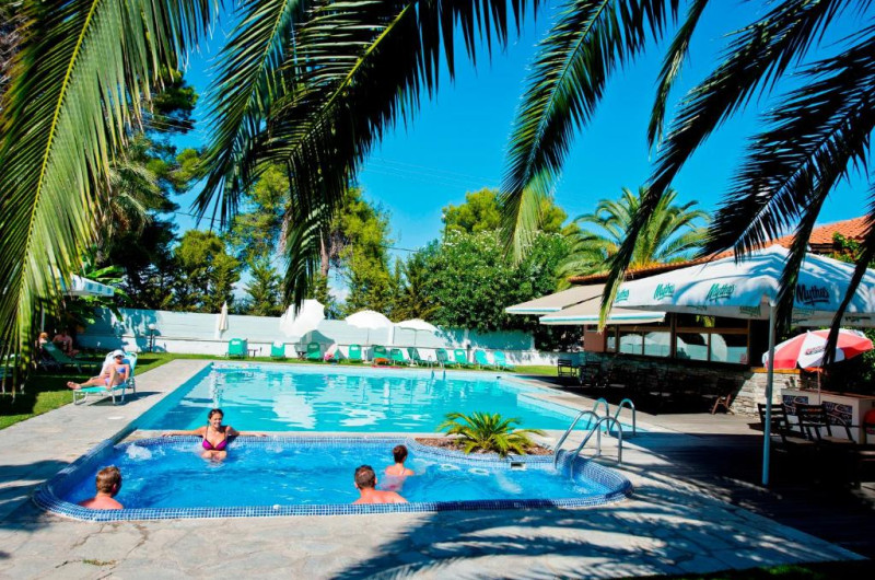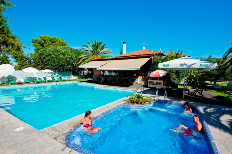 Această proprietate este la 3 minute pe jos față de plajă. Hotelul Hanioti Village este inconjurat de păduri si se află la numai 250 de metri de Plaja din Haniotis. Acesta oferă acces gratuit la Wi-Fi si un centru spa. Piscina este inconjurată de o terasă deschisă spațioasă.