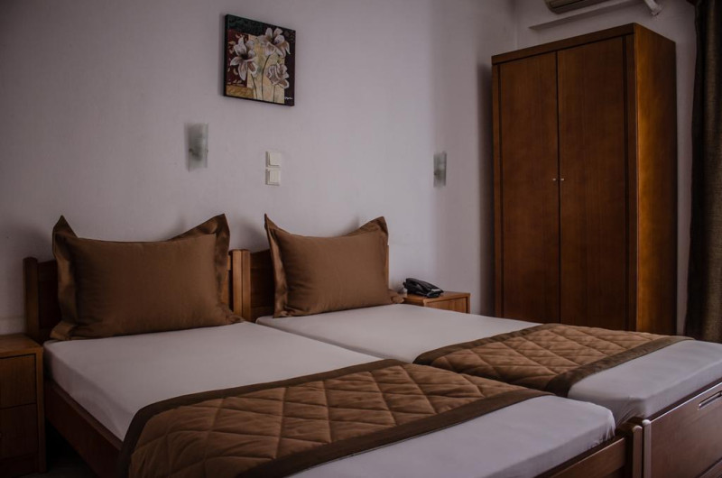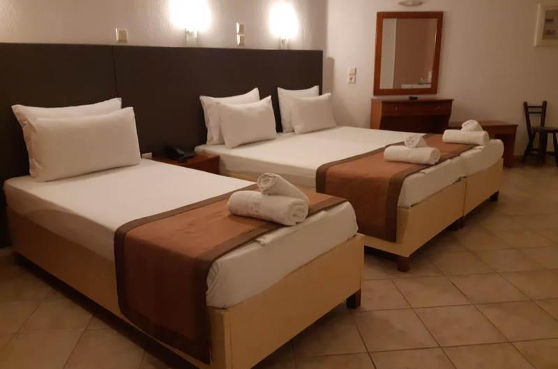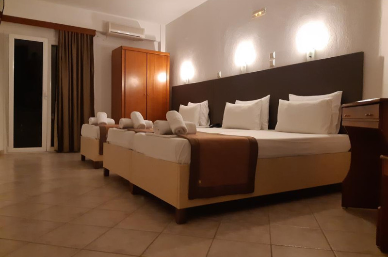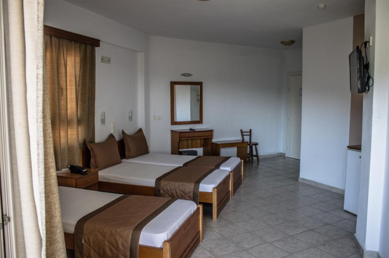 Camerele au balcon cu masă și scaune unde pot fi petrecute momente de relaxare. Fiecare cameră dispune de cană-fierbător. Camerele confortabile de la Ilios Hotel sunt dotate cu pardoseală de gresie/ marmură, aer condiționat, Tv și seif. Oaspeții au acces gratuit la serviciul Wi-fi în camere. Curățenia in cameră se face zilnic. Fiecare unitate de cazare are frigider. Proprietatea oferă camere pentru familie cu o suprafață mai mare și un număr mai mare de paturi față de cele standard.