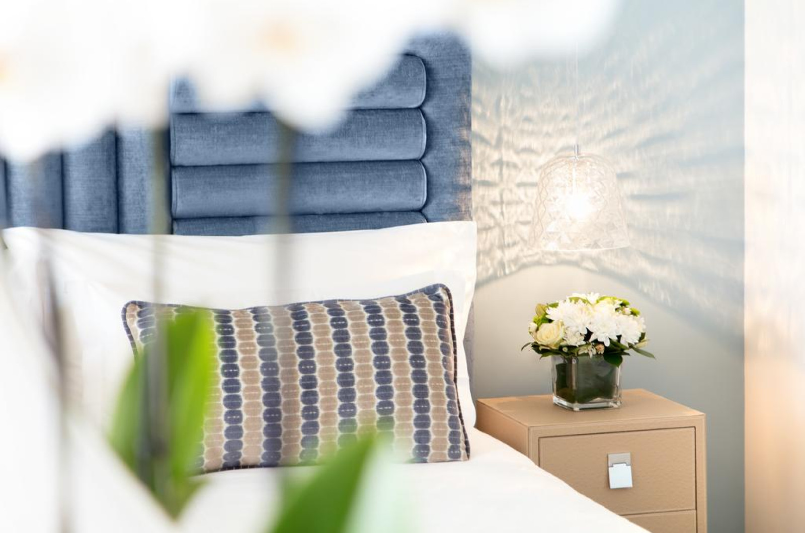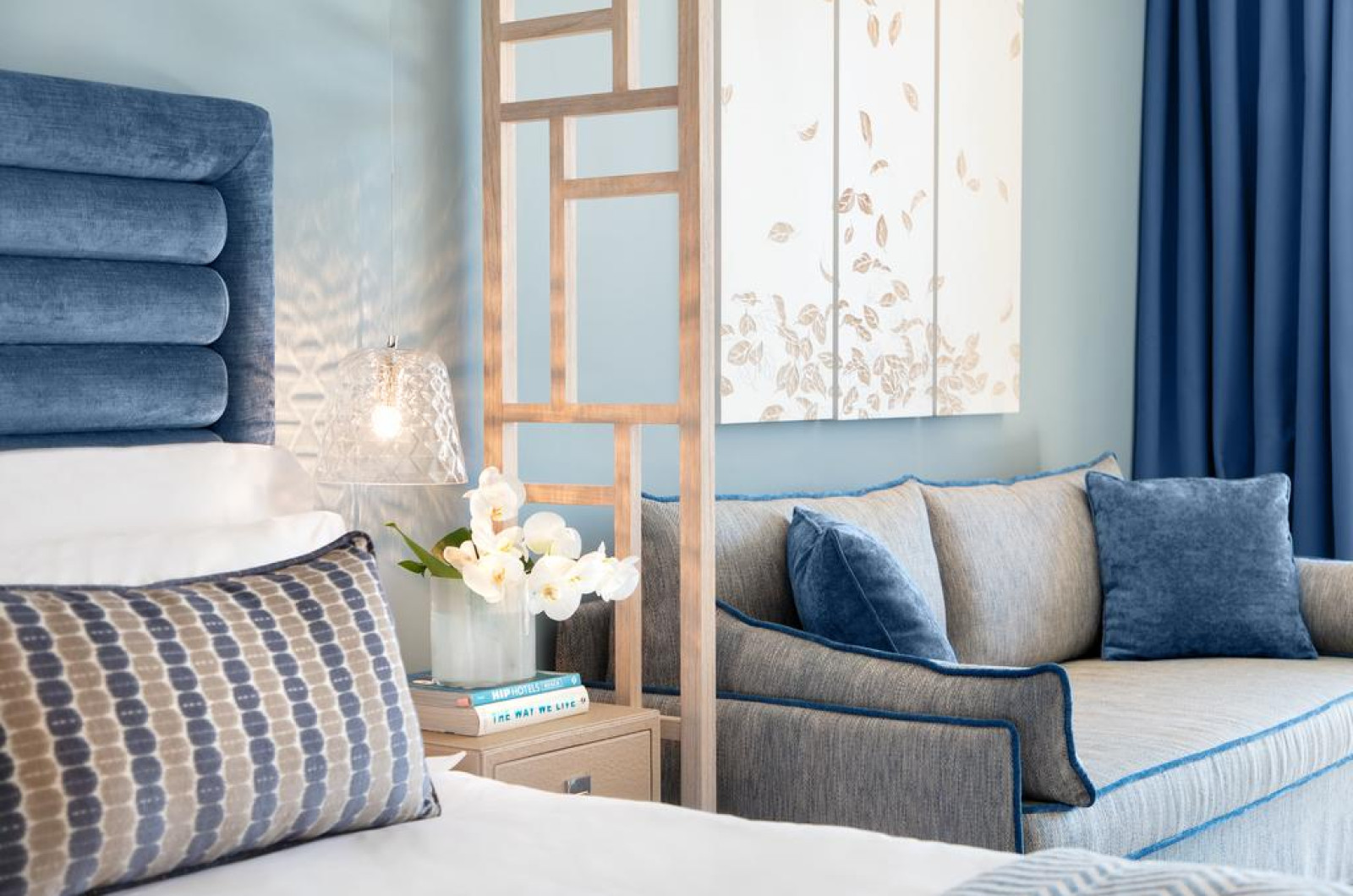 Sunt disponibile 290 camere. Unele camere au balcon cu vedere la mare, unde oaspeții pot admira apusul sau răsăritul soarelui. Camerele confortabile de la Ikos Oceania au pardoseală de gresie/ marmură, aer condiționat, Tv cu canale prin satelit și seif. Fiecare cameră dispune de un aparat pentru preparare cafea sau ceai, cană-fierbător și minibar. Oaspeții pot solicita serviciul de room service pentru a servi masa sau diverse băuturi. În camere există baie cu cadă sau duș, foehn, articole de toaletă gratuite, precum și halate de baie și papuci. Oaspeții au acces gratuit la serviciul Wi-fi în camere. Curățenia in cameră se face zilnic. Proprietatea oferă camere pentru nefumători.
