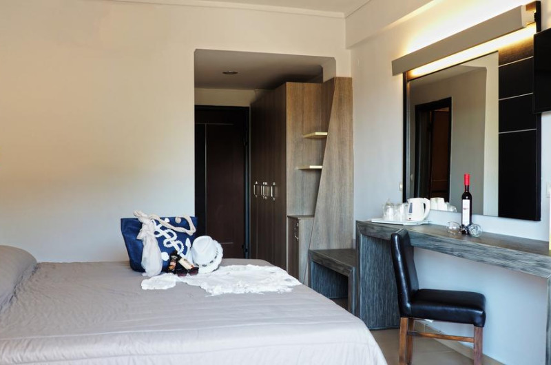 Sunt disponibile 120 camere. Unele camere au balcon cu vedere la mare sau la grădină. Camerele confortabile de la Lagomandra Hotel & Spa au pardoseală de gresie/ marmură, aer condiționat, Tv cu canale prin satelit și seif. Fiecare cameră dispune de minibar și cană pentru preparare apă caldă. În camere există baie cu cadă sau duș ce are în dotare foehn și articole de toaletă gratuite. Oaspeții au acces gratuit la serviciul Wi-fi în camere. Curățenia in cameră se face zilnic. Toate camerele spațioase de la Lagomandra Hotel & Spa au canapea în living, ceea ce oferă un plus de confort. Fiecare unitate de cazare are frigider. Proprietatea oferă camere pentru familie cu o suprafață mai mare și un număr mai mare de paturi față de cele standard. Se pot rezerva de asemenea camere pentru nefumători.