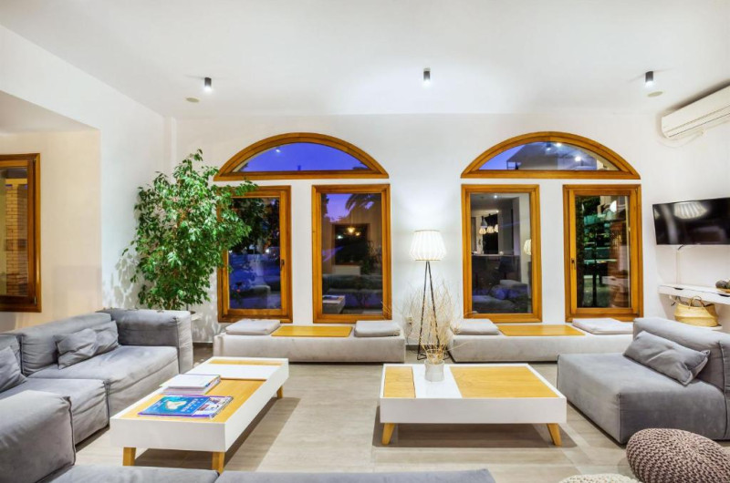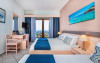 Unele camere au balcon cu vedere la mare sau la piscină. În camere există baie cu cadă sau duș ce are în dotare foehn și articole de toaletă gratuite. Camerele confortabile de la Palladium Hotel au pardoseală de gresie/ marmură, aer condiționat, Tv cu canale prin satelit și seif. Curățenia in cameră se face zilnic. Toate camerele spațioase de la Palladium Hotel au zonă de relaxare cu canapea, ceea ce oferă un plus de confort. Fiecare unitate de cazare are frigider. Proprietatea oferă camere pentru familie cu o suprafață mai mare și un număr mai mare de paturi față de cele standard. Se pot rezerva de asemenea camere pentru nefumători.