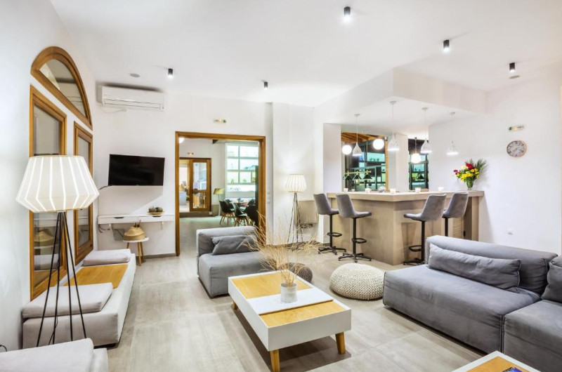 Cel mai apropiat aeroport este Aeroportul Salonic, situat la o distanță de 67 km. La cerere proprietatea organizează transfer la/de la aeroport contra cost.
