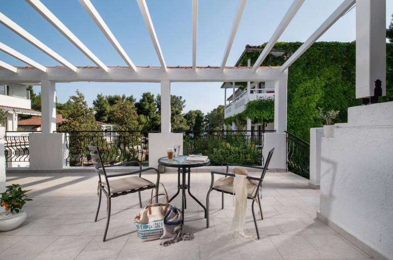 Cel mai apropiat aeroport este Aeroportul Salonic, situat la o distanță de 95 km. La cerere proprietatea organizează transfer la/de la aeroport contra cost.