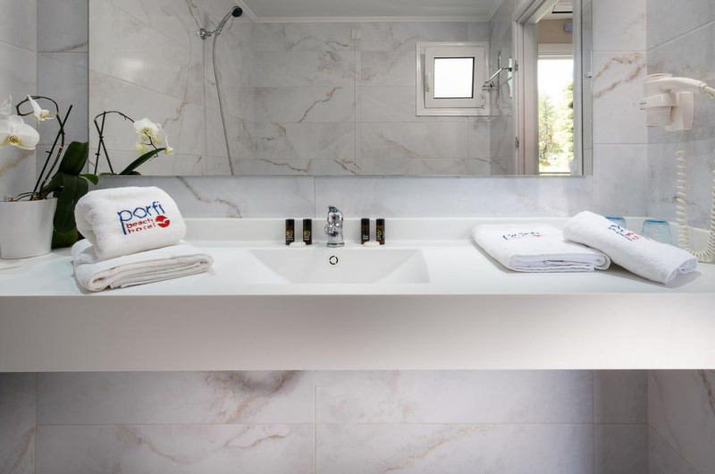 Porfi Beach Hotel dispune de plajă privată cu nisip și pietriș. Pe plajă există șezlonguri și umbrele de plajă gratuite.