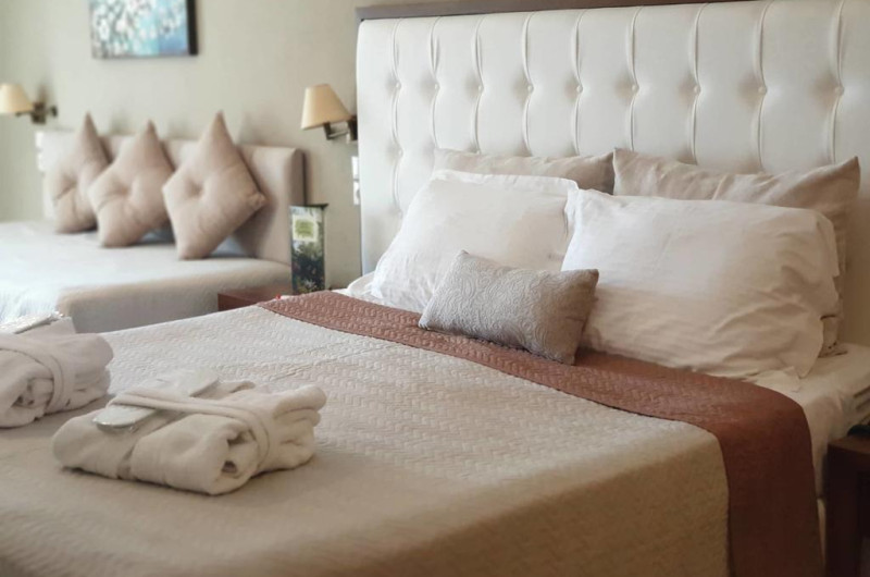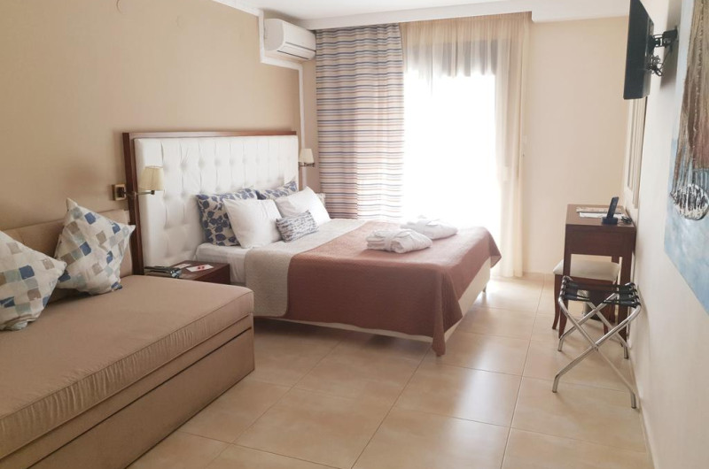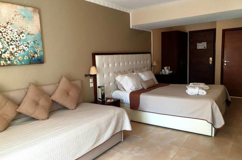 Sunt disponibile 41 camere. Fiecare cameră dispune de minibar și cană-fierbător. Oaspeții pot solicita serviciul de room service pentru a servi masa sau diverse băuturi. Camerele confortabile de la Secret Paradise Hotel au pardoseală de gresie/ marmură, aer condiționat, Tv cu canale prin satelit și seif. Unele camere au balcon cu vedere la mare sau la piscină. În camere există baie cu duș ce are în dotare foehn și articole de toaletă gratuite. Oaspeții au acces gratuit la serviciul Wi-fi în camere. Curățenia in cameră se face zilnic. Proprietatea oferă camere pentru familie cu o suprafață mai mare și un număr mai mare de paturi față de cele standard. Se pot rezerva de asemenea camere pentru nefumători.