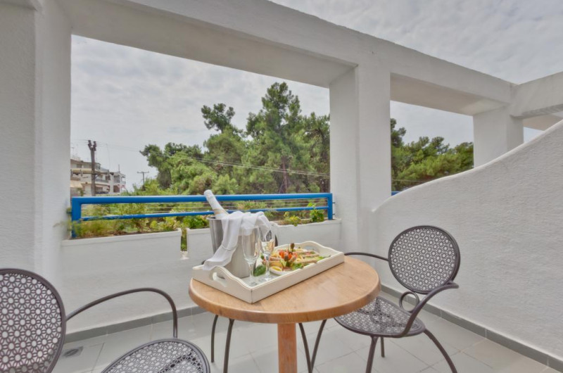 Cel mai apropiat aeroport este Aeroportul Salonic, situat la o distanță de 25 km. La cerere proprietatea organizează transfer la/de la aeroport contra cost.