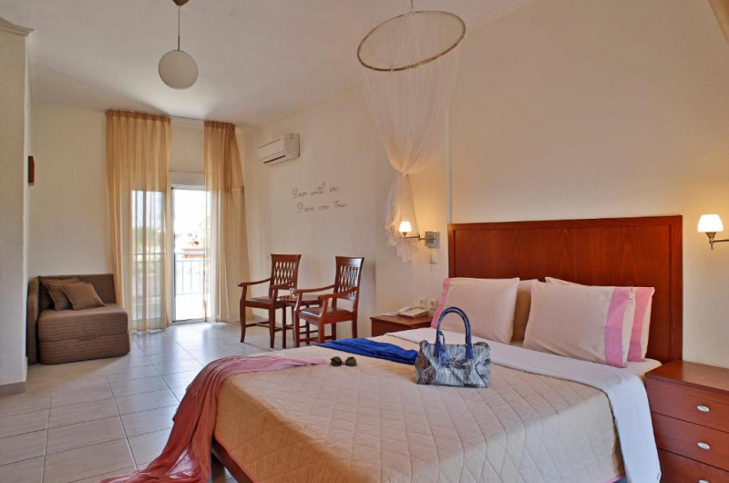 Camerele luminoase au balcon mobilat, iar majoritatea oferă vedere la grădina interioară spatioasă si la piscină. Toate camerele decorate modern sunt dotate cu aer conditionat, TV, seif și uscător de păr. Proprietatea pune la dispoziție gratuit pătuturi pentru copii.