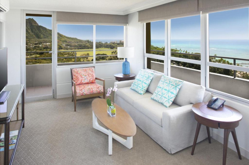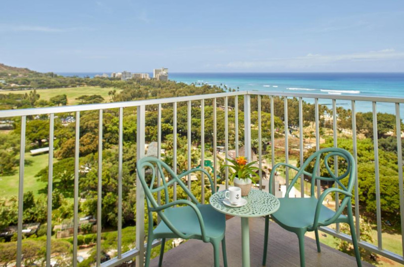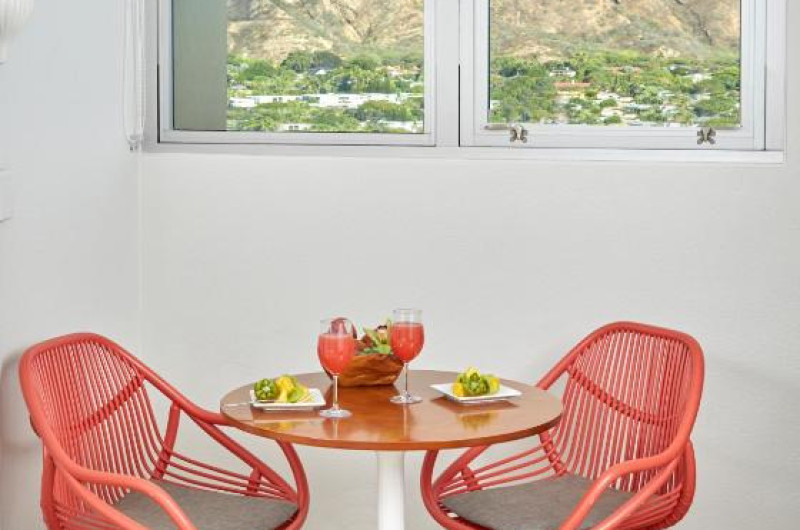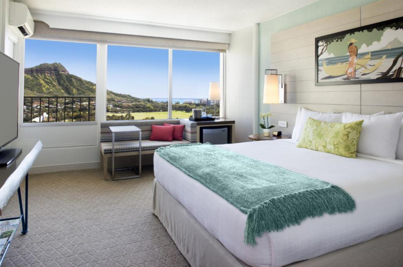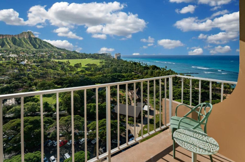 Situat la o distanță de o stradă de plaja Waikiki, acest hotel are terasă și o piscină in aer liber cu vedere panoramică la craterul Diamond Head. Camerele sunt spațioase și includ un TV cu ecran plat de 49 inch si frigider.