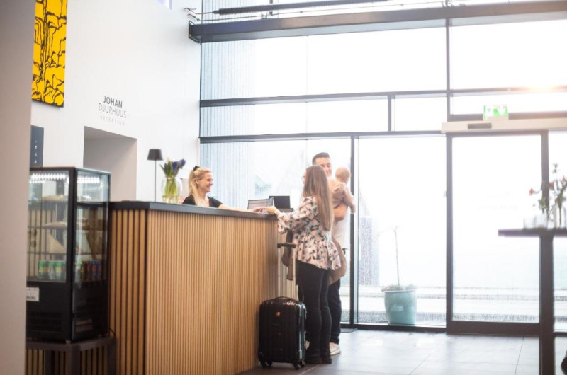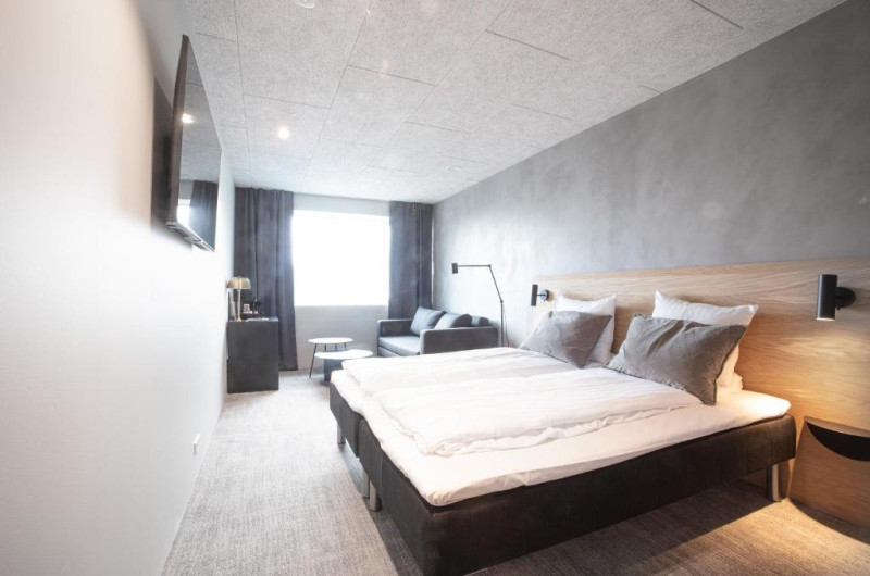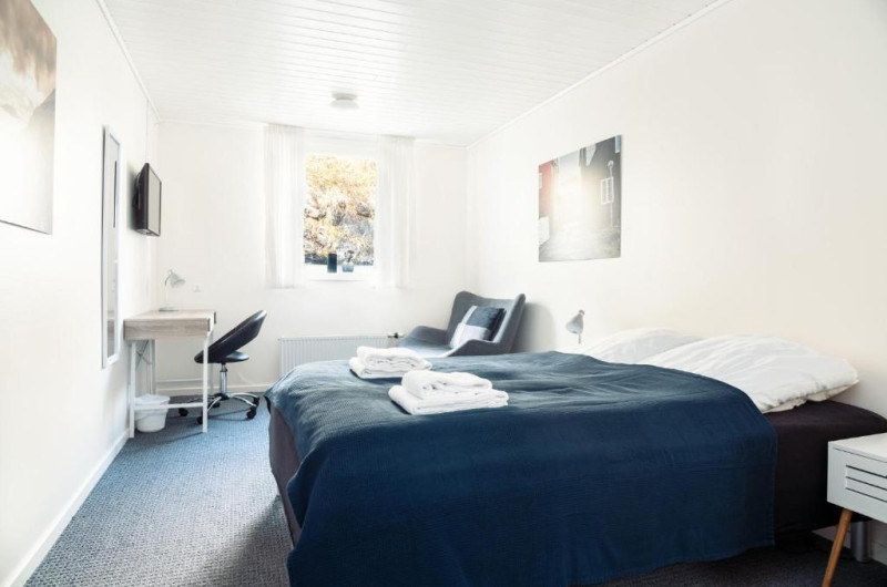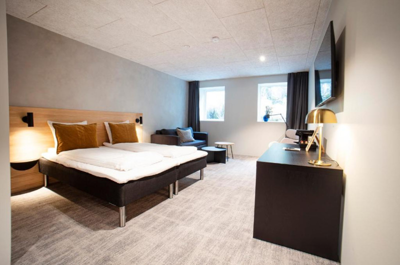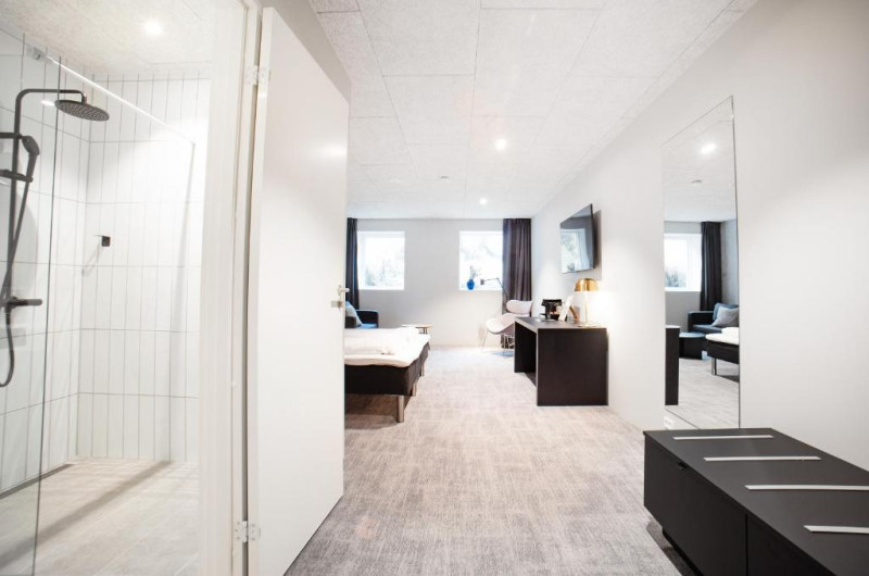 Camerele Hotelului Djurhuus au baie privată cu incălzire prin pardoseală. TV prin satelit, birou și aparat de cafea. Mai multe camere au și vedere la mare. La cerere, pot fi aranjate pat suplimentar/pătuț de copii, precum și servicii de spălătorie.