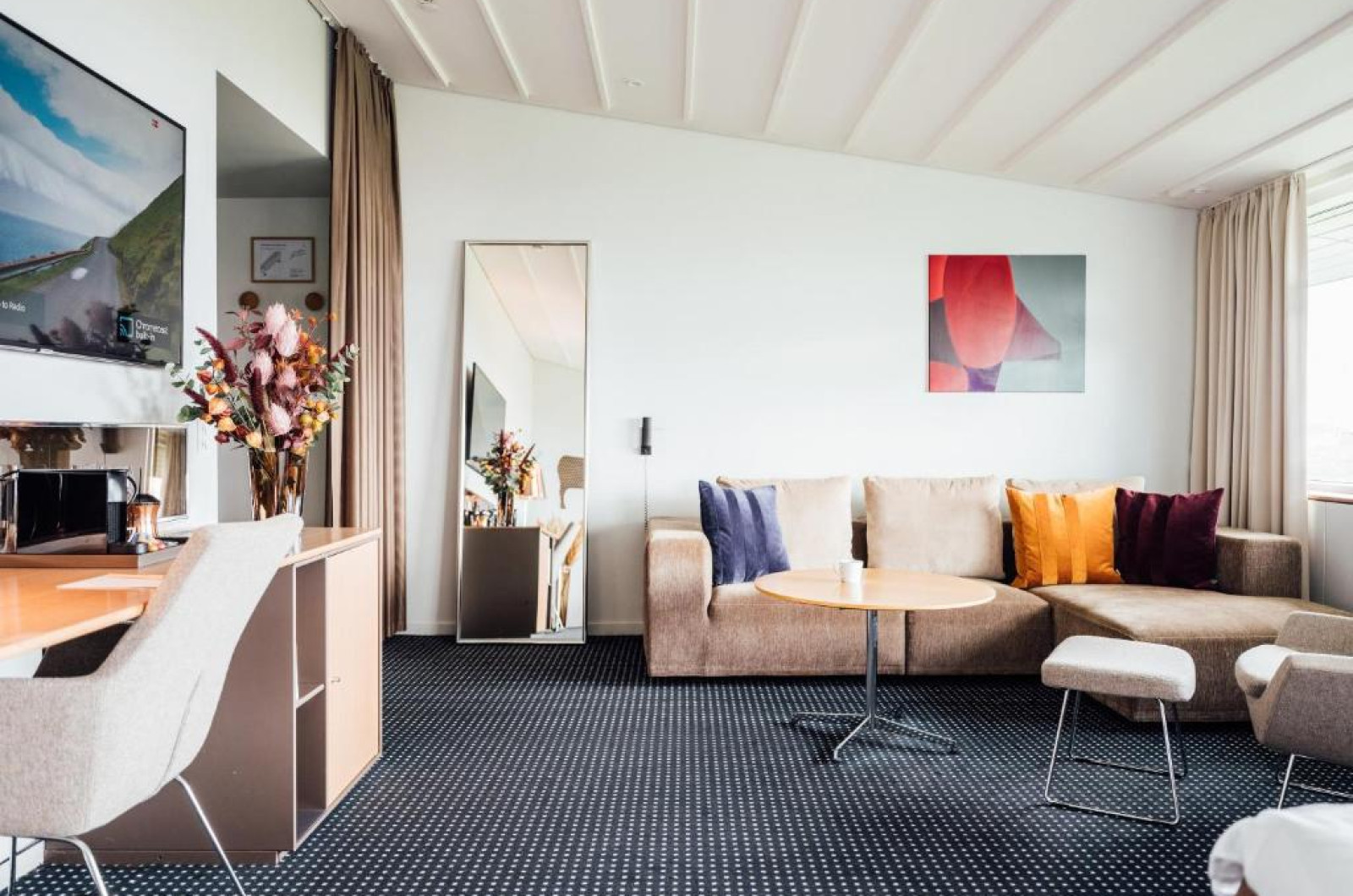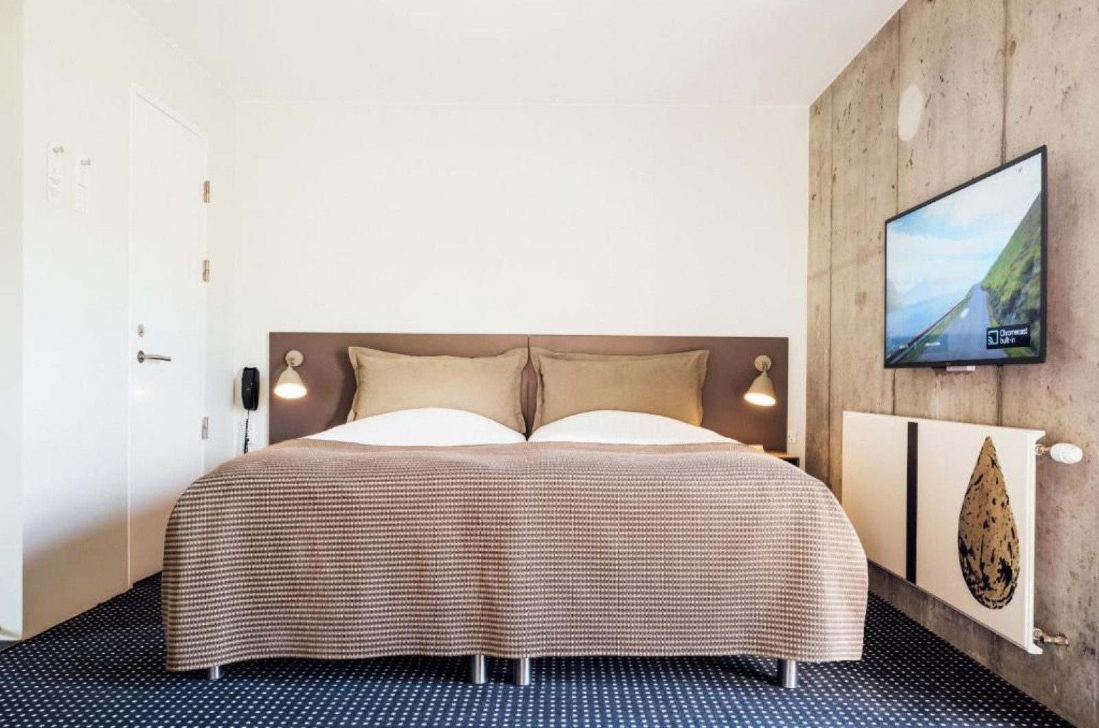Acest hotel de design se află intr-un cadru liniștit, acoperișul său din gazon natural integrandu-se in peisajul rural, plin de verdeață. Toate camerele au vedere la Fiordul Nólsoy și la centrul localității Tórshavn, aflat la 2 km. Oaspeții beneficiază de WiFi gratuit. Hotelul Føroyar a fost proiectat de renumiții arhitecți danezi Friis & Moltke. Camerele sunt amenajate in culori liniștitoare și au design luminos și modern, semnat Philippe Starck și Montana. Toate camerele sunt dotate cu TV cu canale prin cablu/satelit. Relieful zonei este apreciat de excursioniști. De la Hotelul Føroyar se poate ajunge la centrul cultural Casa Nordică cu mașina in 3 minute. Zona istorică a orașului Tinganes se află la 3 km.