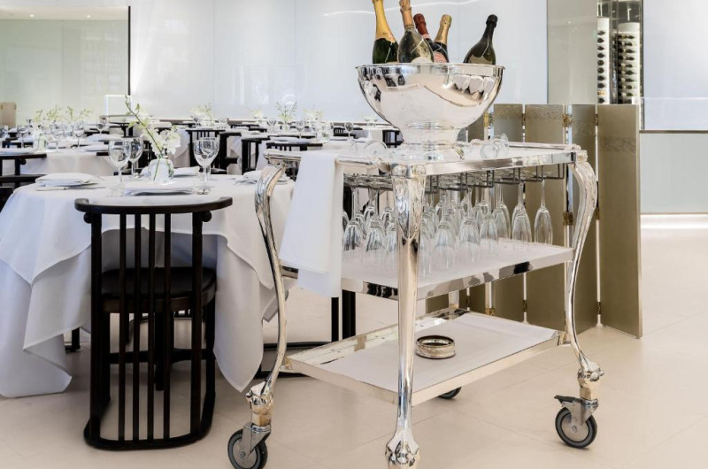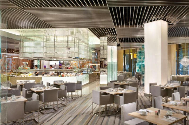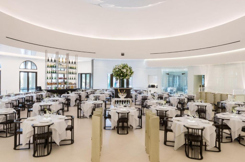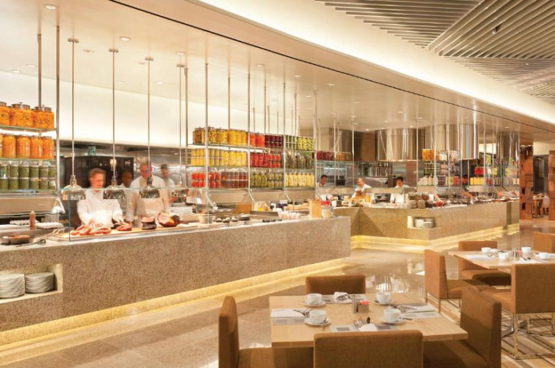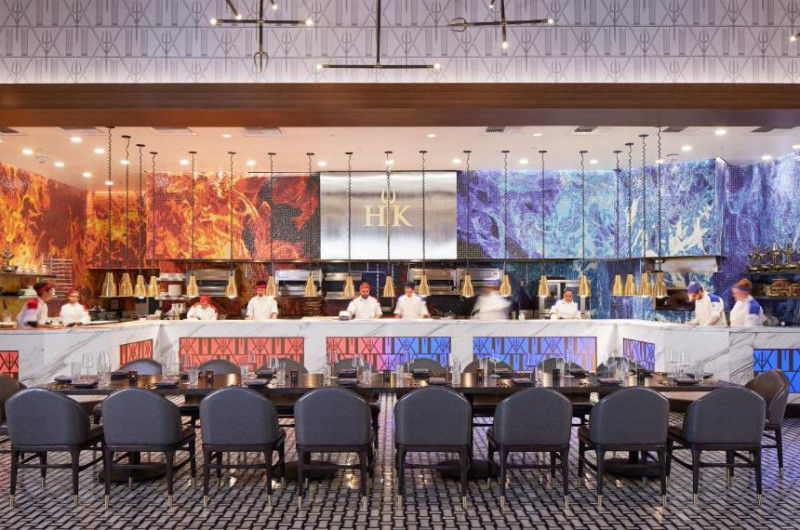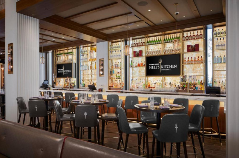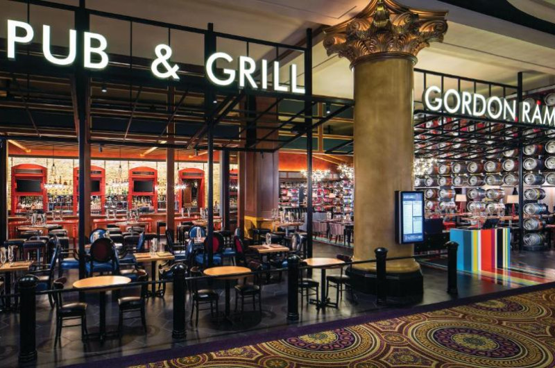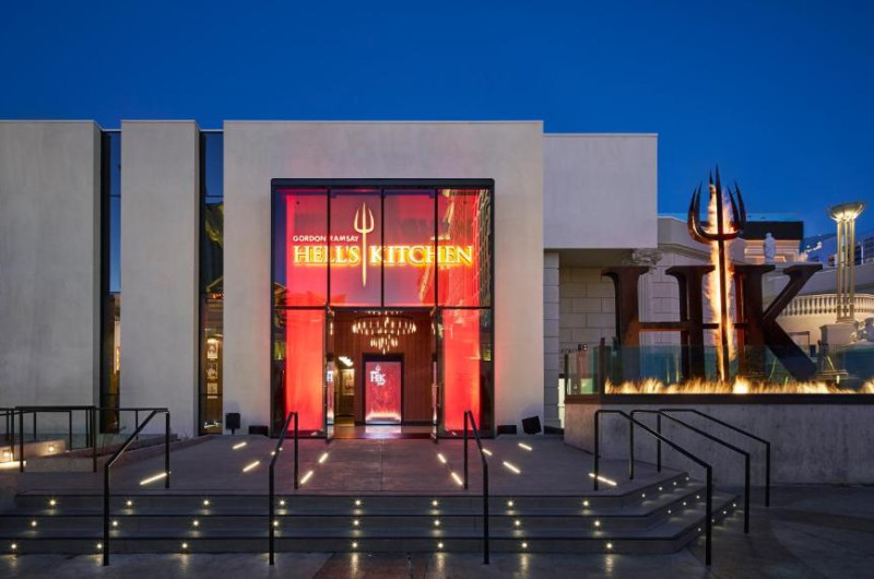 Opțiunile de luat masa includ Gordon Ramsay's Pub & Grill, Gordon Ramsay Hell's Kitchen, Mr. Chow și Restaurant Guy Savoy. Bufetul Bacchanal cu 500 de articole și opțiuni de luat masa informal, cum ar fi Beijing Noodle No. 9, sunt disponibile la proprietate.