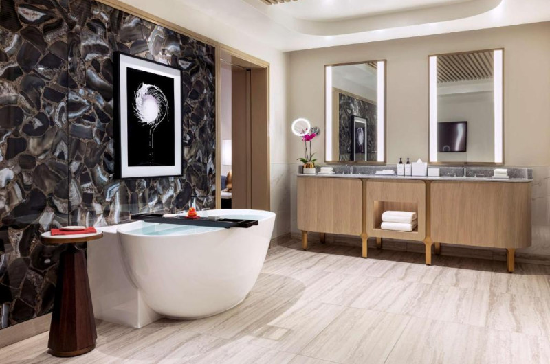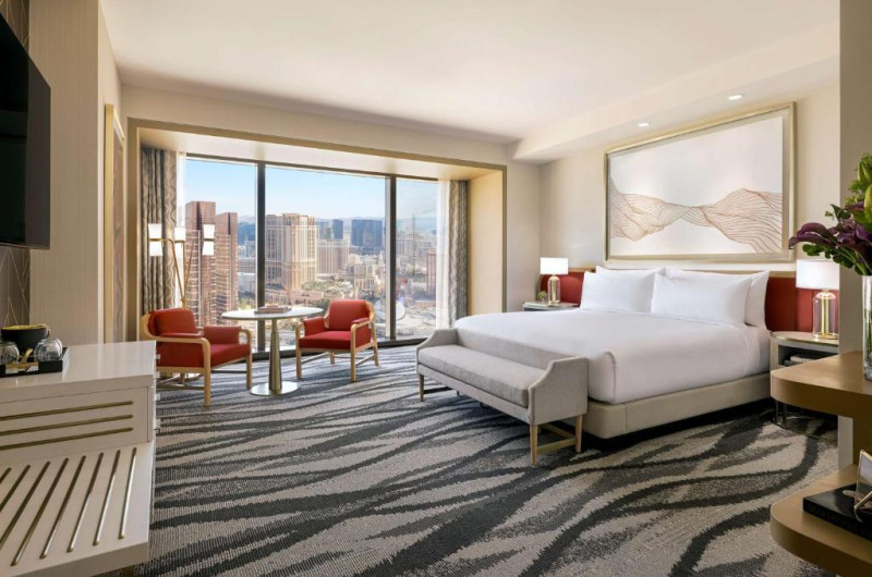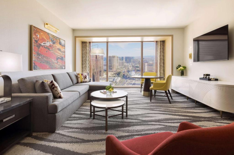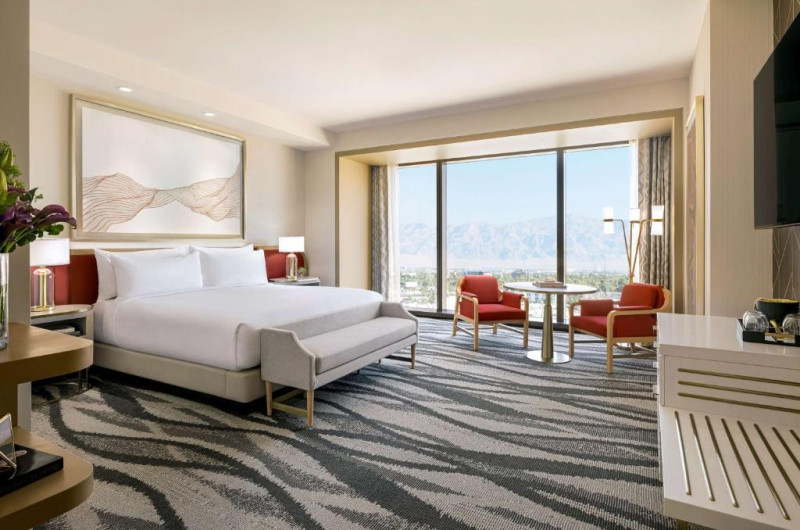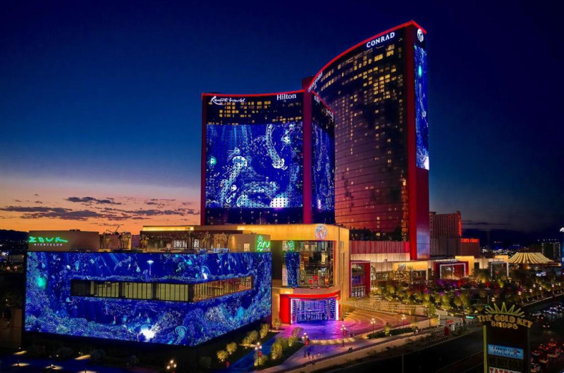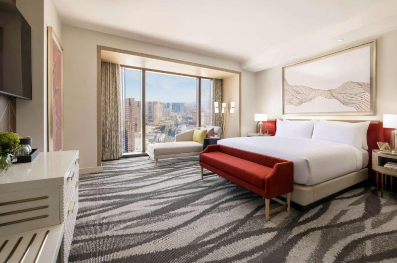 Fiecare dintre camerele premium Conrad de 550 de metri pătrați creează o conexiune puternică intre atracția contemporană, facilitățile de lux și arta curată pentru a inspira spiritul antreprenorial al călătorul conectat la nivel global. Oaspeții de la Conrad Las Vegas se vor bucura de cazinoul de 100.000 de metri pătrați, aproape 30 de magazine și peste 40 de opțiuni de luat masa. Oaspeții vor avea, de asemenea, acces la șapte piscine unice, inclusiv o piscină pentru familie. Unitățile de cazare premium au o schemă de culori strălucitoare, cu texturi indrăznețe și un amestec de metal și elemente organice contrastante, iar peretele de divertisment al camerei are un TV LED, minibar și frigider. Estetica luminoasă și modernă a camerelor Conrad continuă in baie, cu note elegante de roșu in nișa toaletei personalizate și gresie de accent in cabina de duș cu efect de ploaie din sticlă. Piesele de artă curatate, comandate special pentru Resorts World Las Vegas, sunt amplasate in camerele de oaspeți și in intreaga proprietate, creand un fir de continuitate a designului de la momentul sosirii pană la momentele private ale oaspeților.