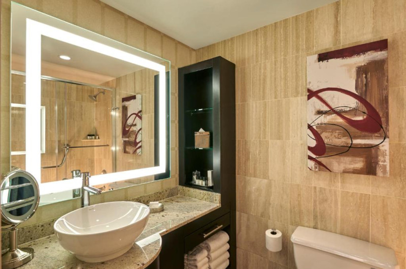Oferind o zonă de toaletă separată langă baia privată din marmură, fiecare cameră are o saltea cu pernă. De asemenea, există un TV cu ecran plat de 40 inch cu canale prin cablu, lenjerie de pat albă și mobilier bogat din lemn și piele. Anumite suite au două băi private din marmură sau două televizoare cu ecran plat cu canale prin cablu.