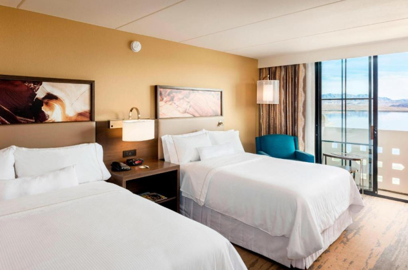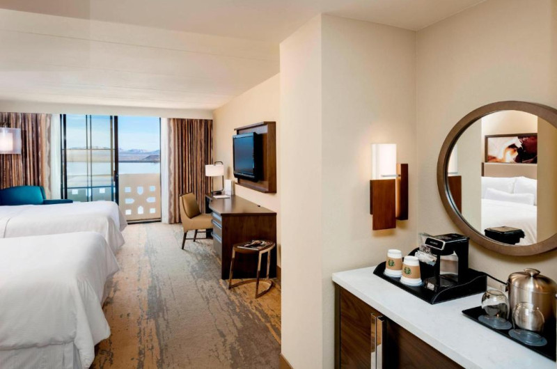 Camerele de la The Westin Lake Las Vegas Resort & Spa au televizoare cu ecran plat. Oaspeții se pot relaxa la sfarșitul zilei cu articole de toaletă luxoase Westin Heavenly Bath și halate de baie confortabile. După o noapte de somn odihnitoare, oaspeții se pot trezi cu o ceașcă gratuită de cafea in cameră.