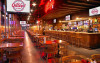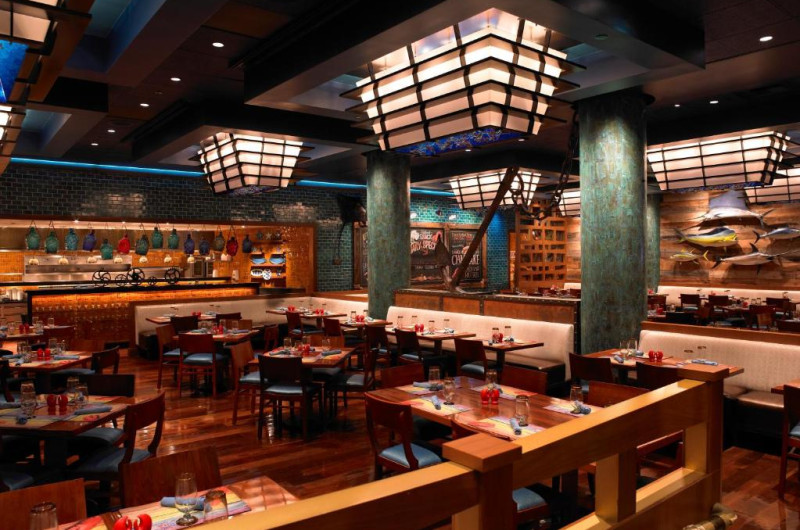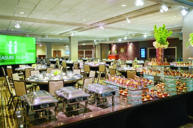 Oaspetii de la Treasure Island - TI Las Vegas Hotel & Casino, a Radisson Hotel pot lua masa la Phil’s Italian Steakhouse, care serveste un meniu de cină cu fripturi clasice, fructe de mare si specialităti italiene. Senor Frogs Las Vegas are atmosferă mai relaxată de bar/restaurant și servește mancăruri mexicane. Gilley’s BBQ, un salon honky-tonk texan și sală de dans, oferă dans in linie și călărie mecanică.