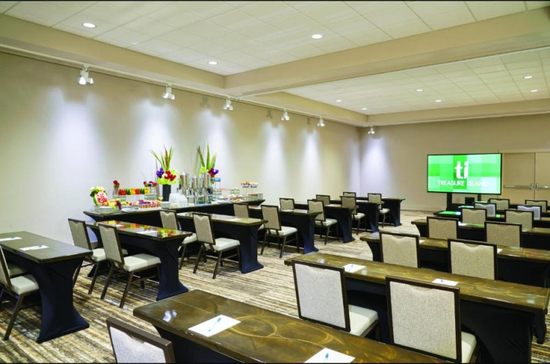 Camerele de la Treasure Island - TI Las Vegas Hotel & Casino, a Radisson Hotel au ferestre din podea pană in tavan cu vedere la munți și la Las Vegas Strip. Acestea au aer condiționat, birou mare, mini-frigider și seif pentru laptop. Băile private au uscător de păr, oglindă cosmetică iluminată și articole de toaletă gratuite.